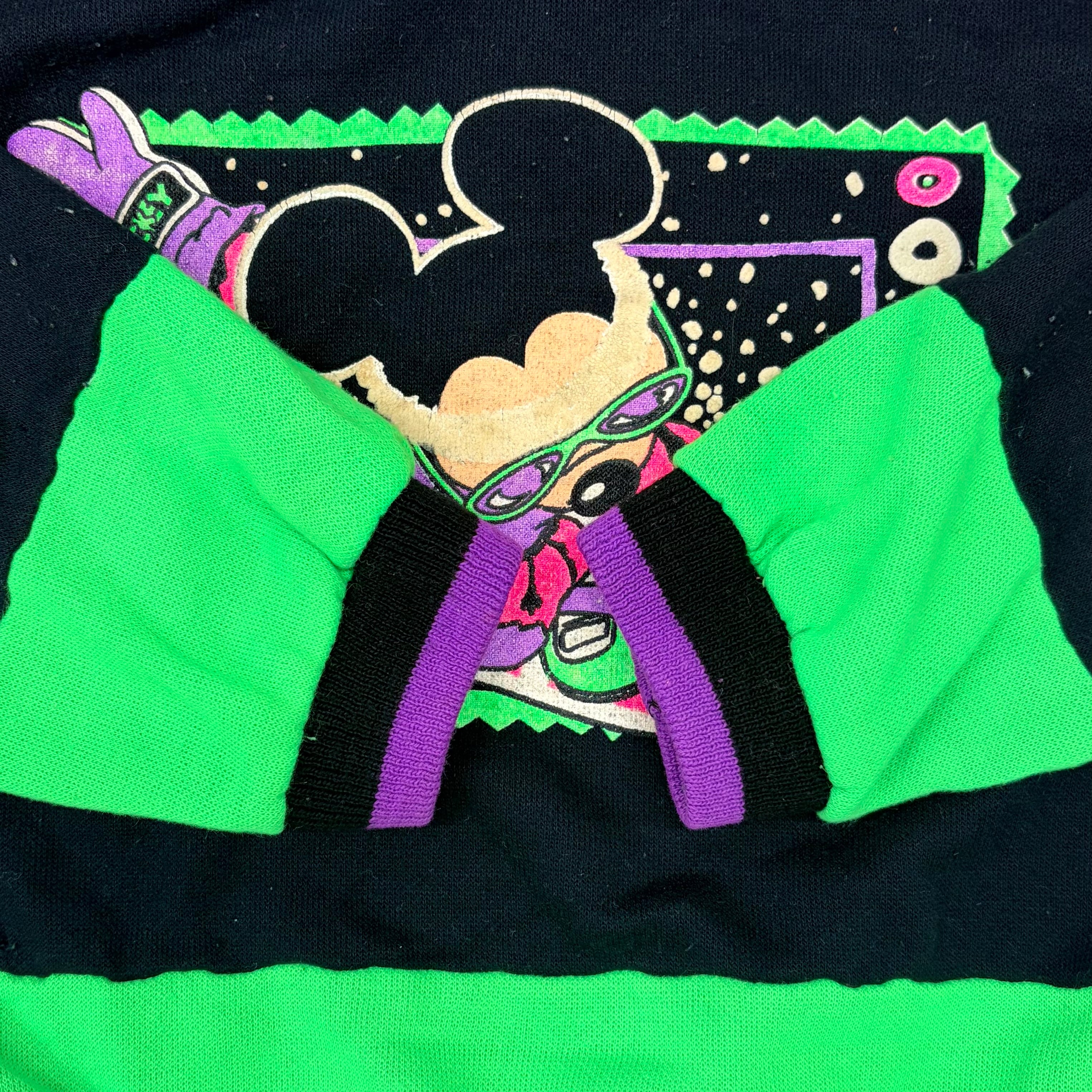 【5-6T】USA製 Disney by JOG TOGS Mickey snowboarding neon sweatshirt ミッキー スノーボード ネオンカラー スウェット トレーナー