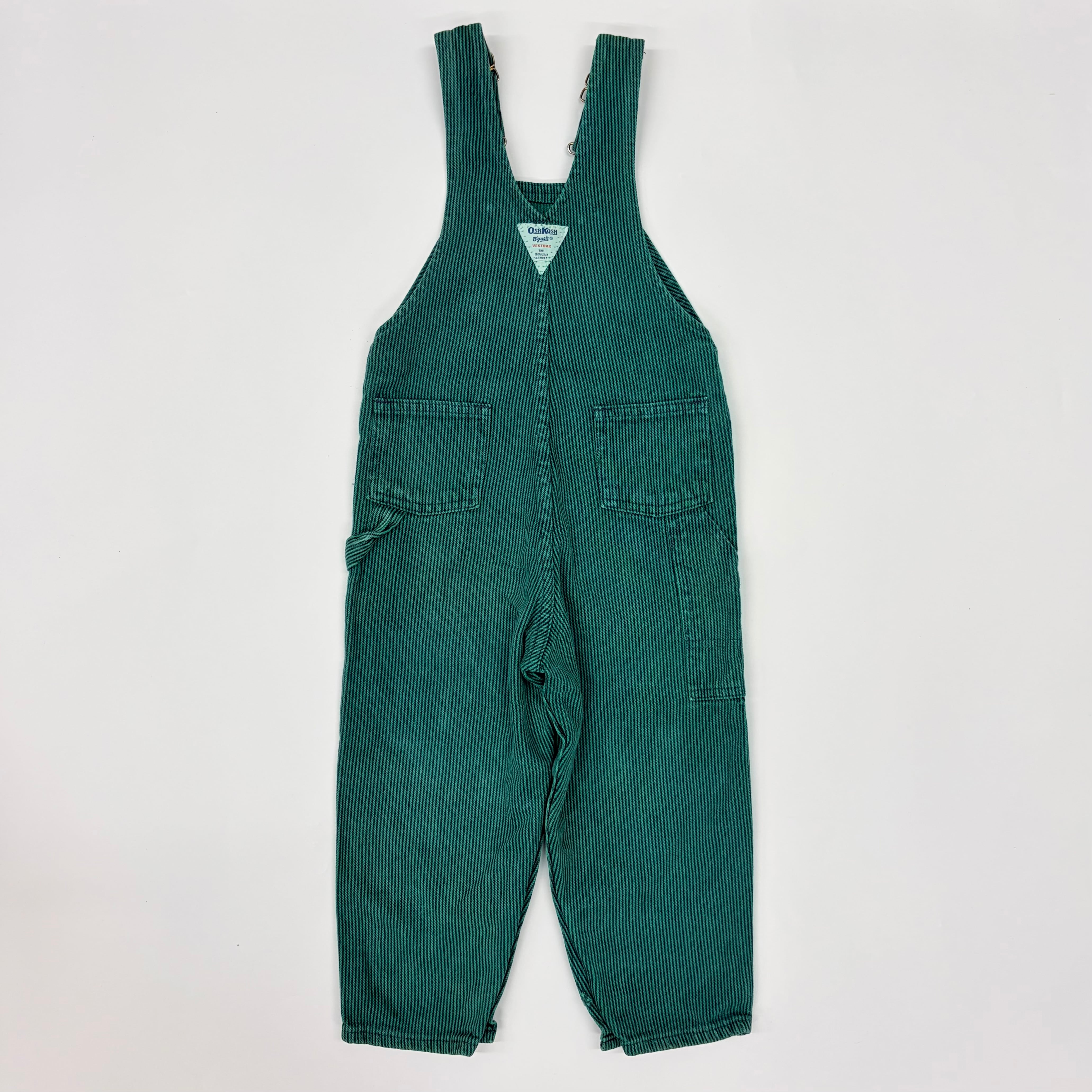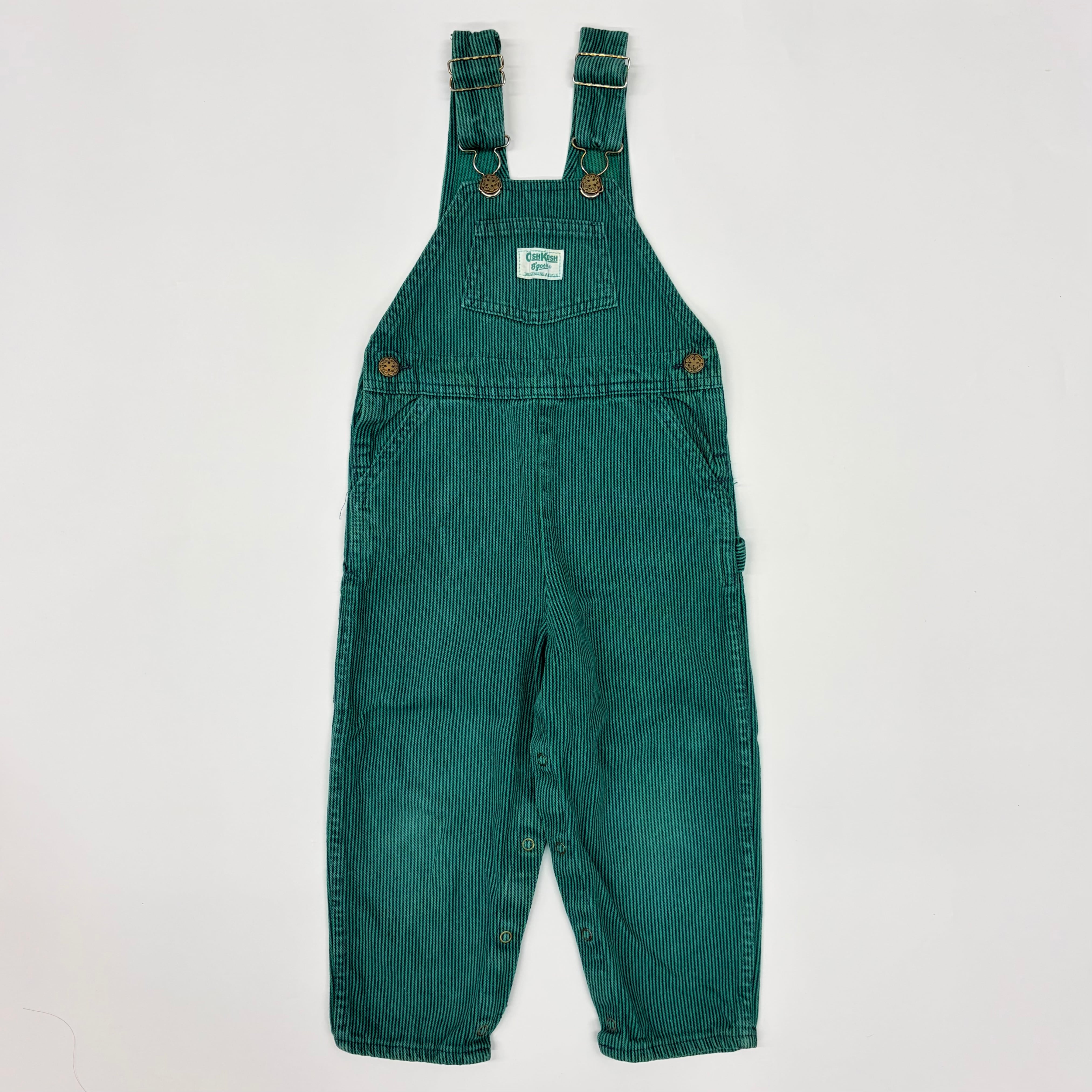 【4T】USA製 Oshkosh hickory green stripe overall オシュコシュ ヒッコリー グリーンストライプ オーバーオール