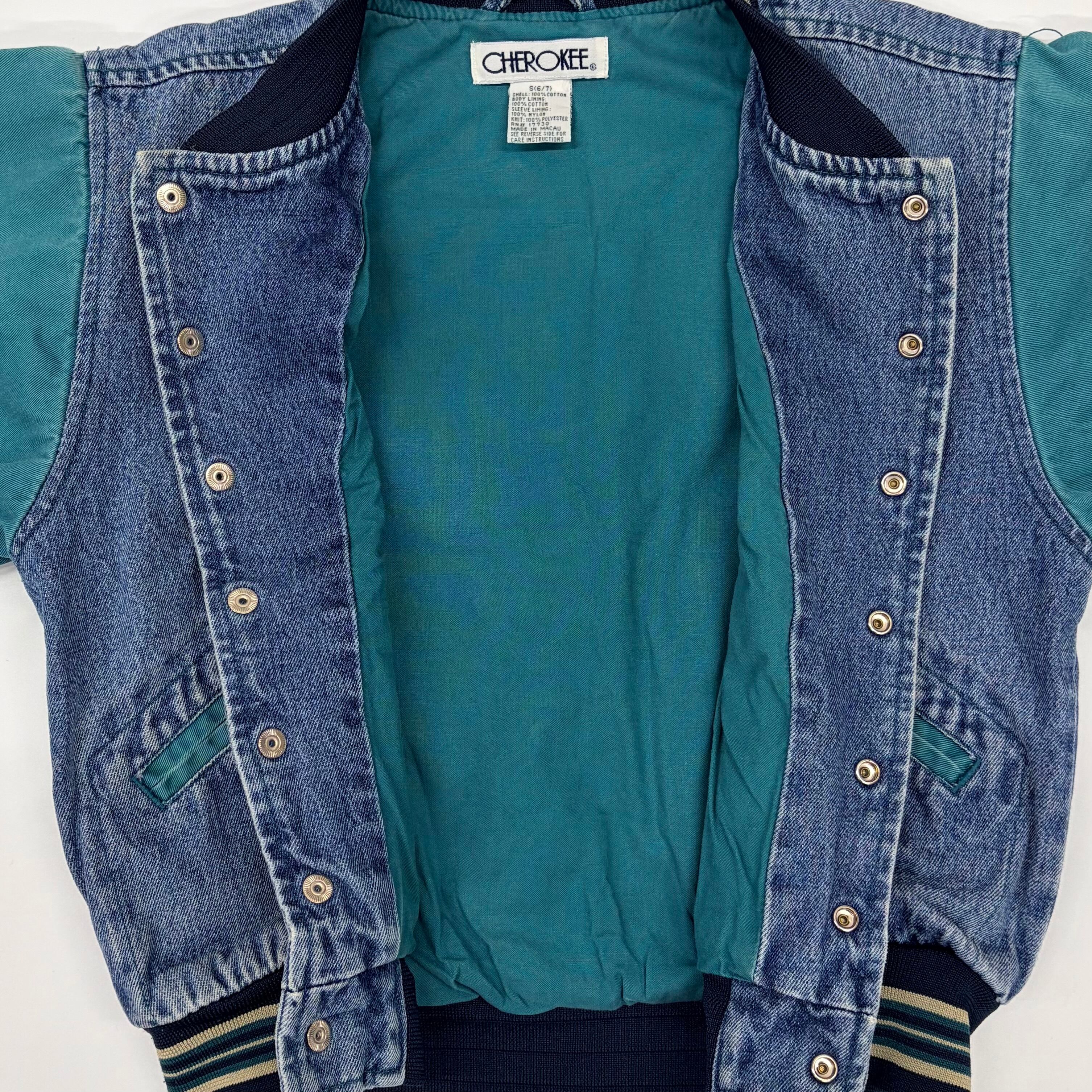 【6-7T】CHEROKEE denim varsity jacket チェロキー デニム バーシティージャケット スタジアムジャンパー スタジャン