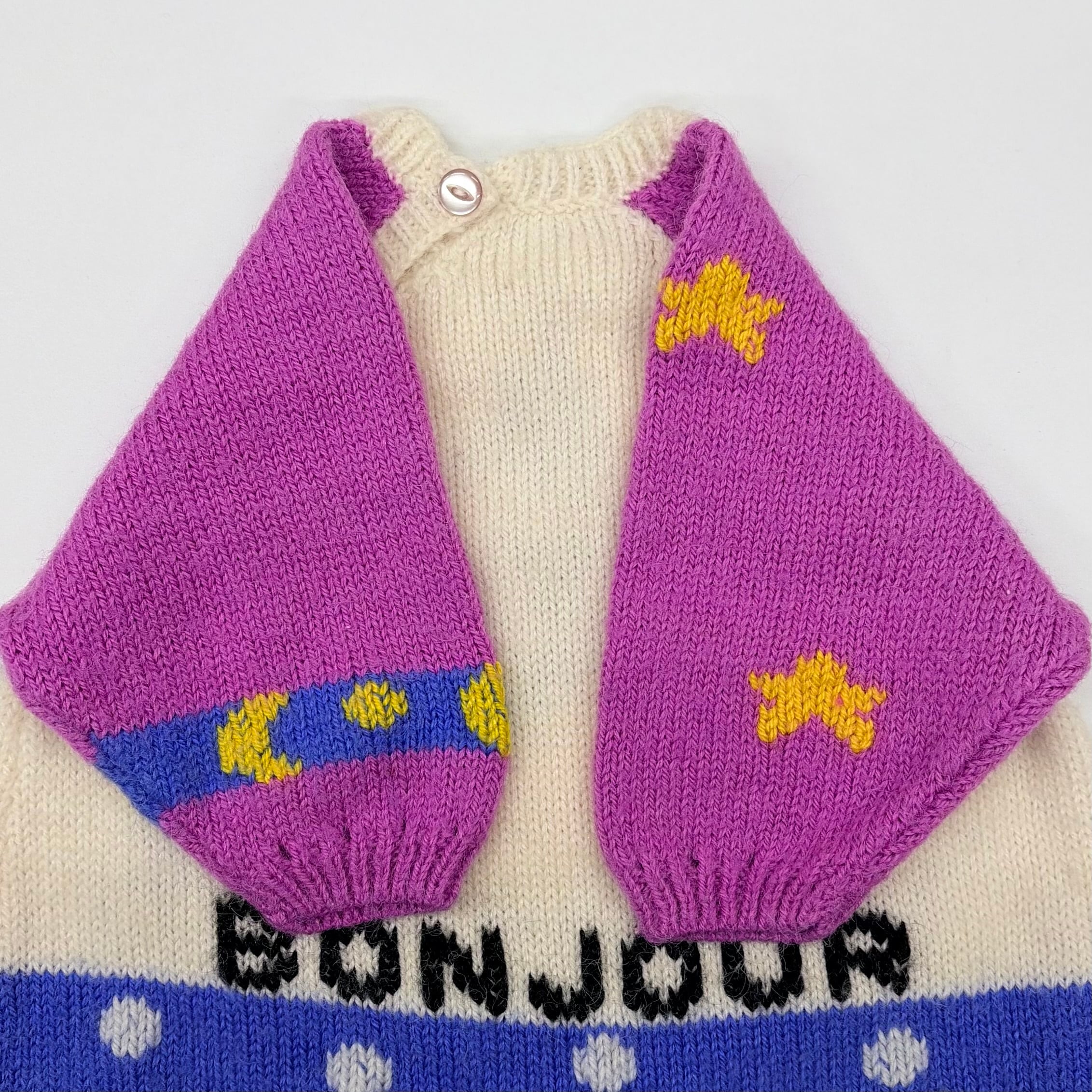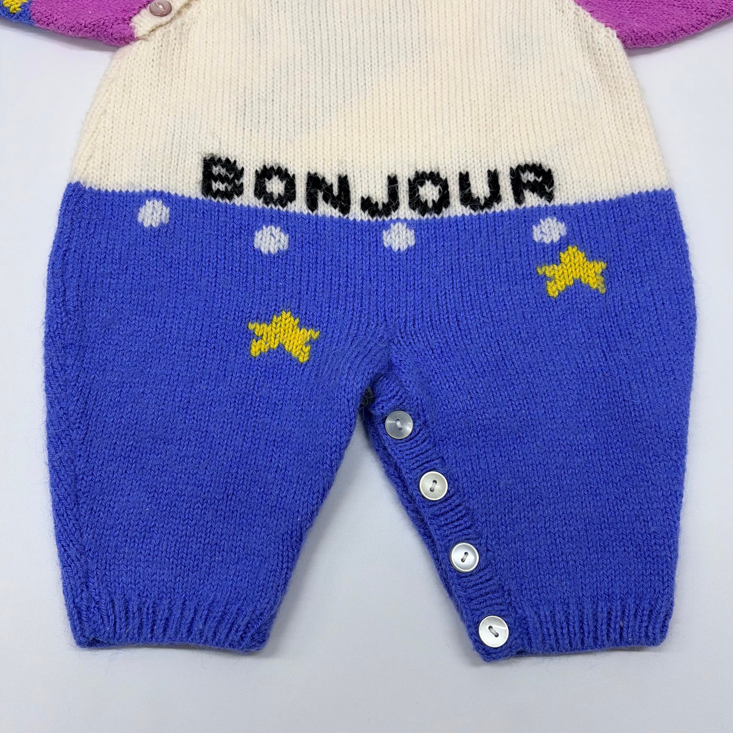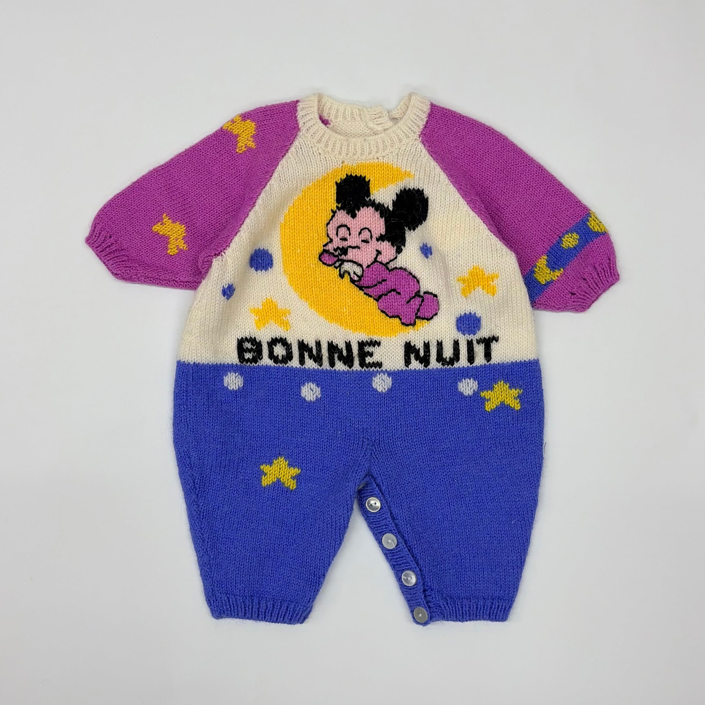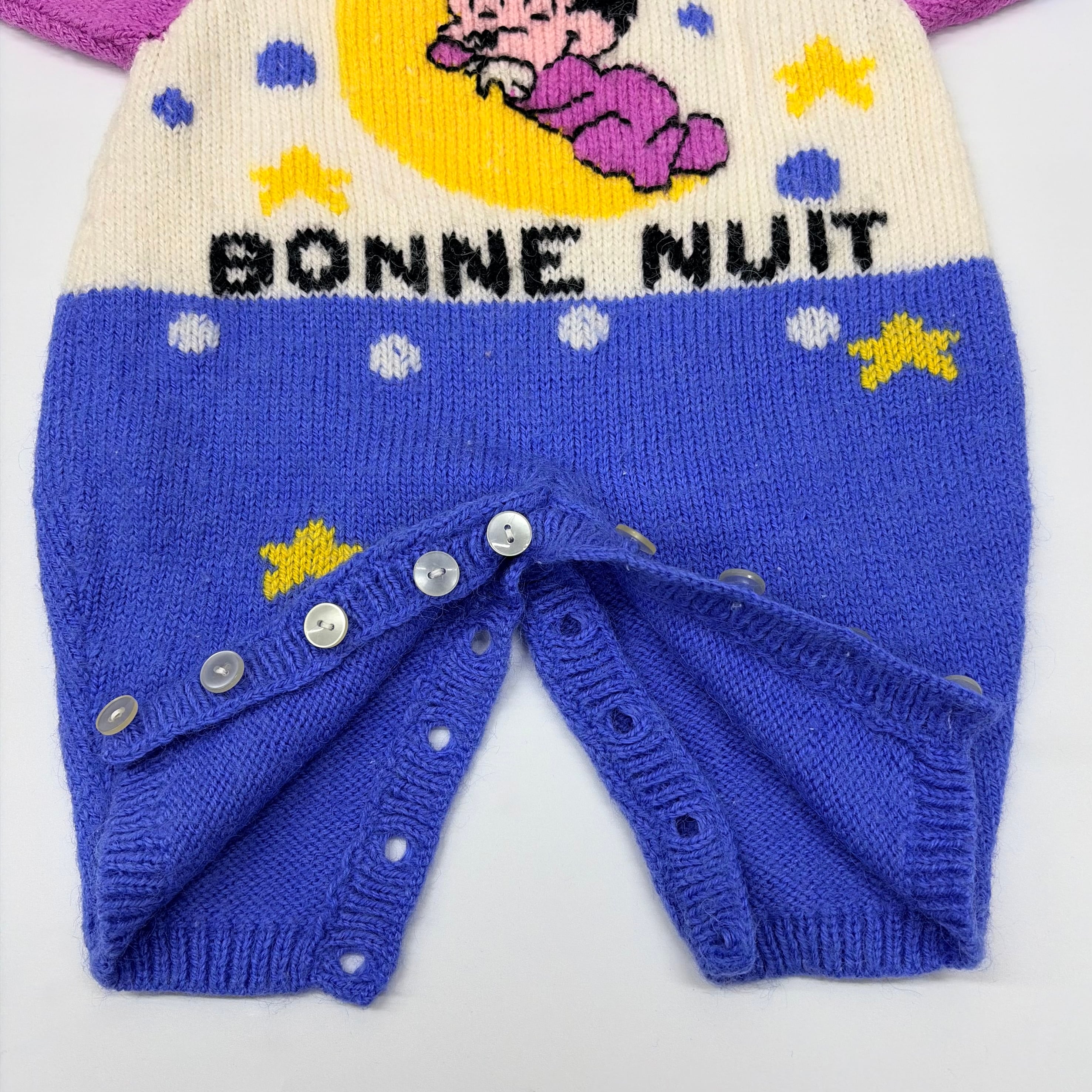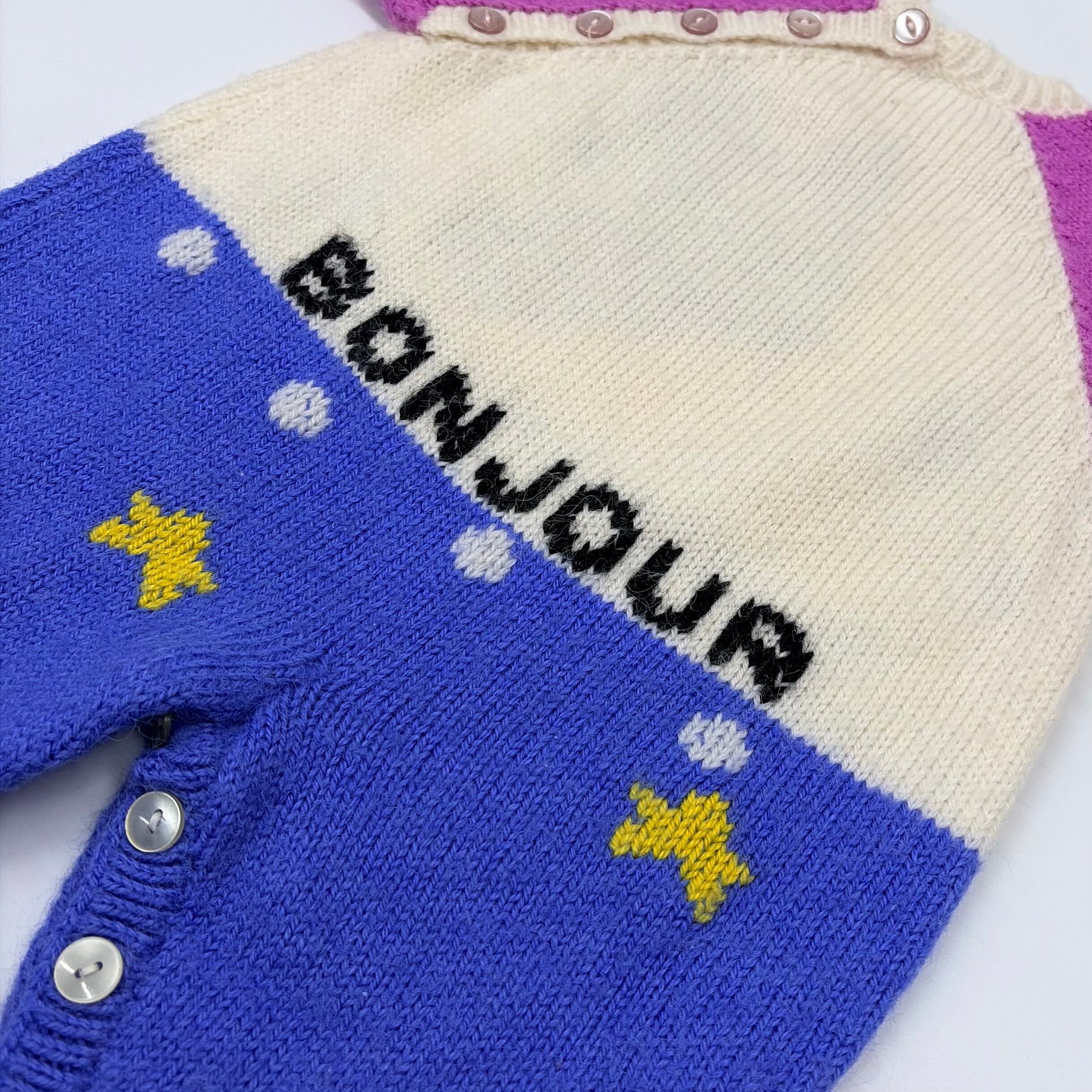 ニット毛玉が多少ありますが、全体的に美品です。「BONNE NUIT」はフランス語で「おやすみなさい」