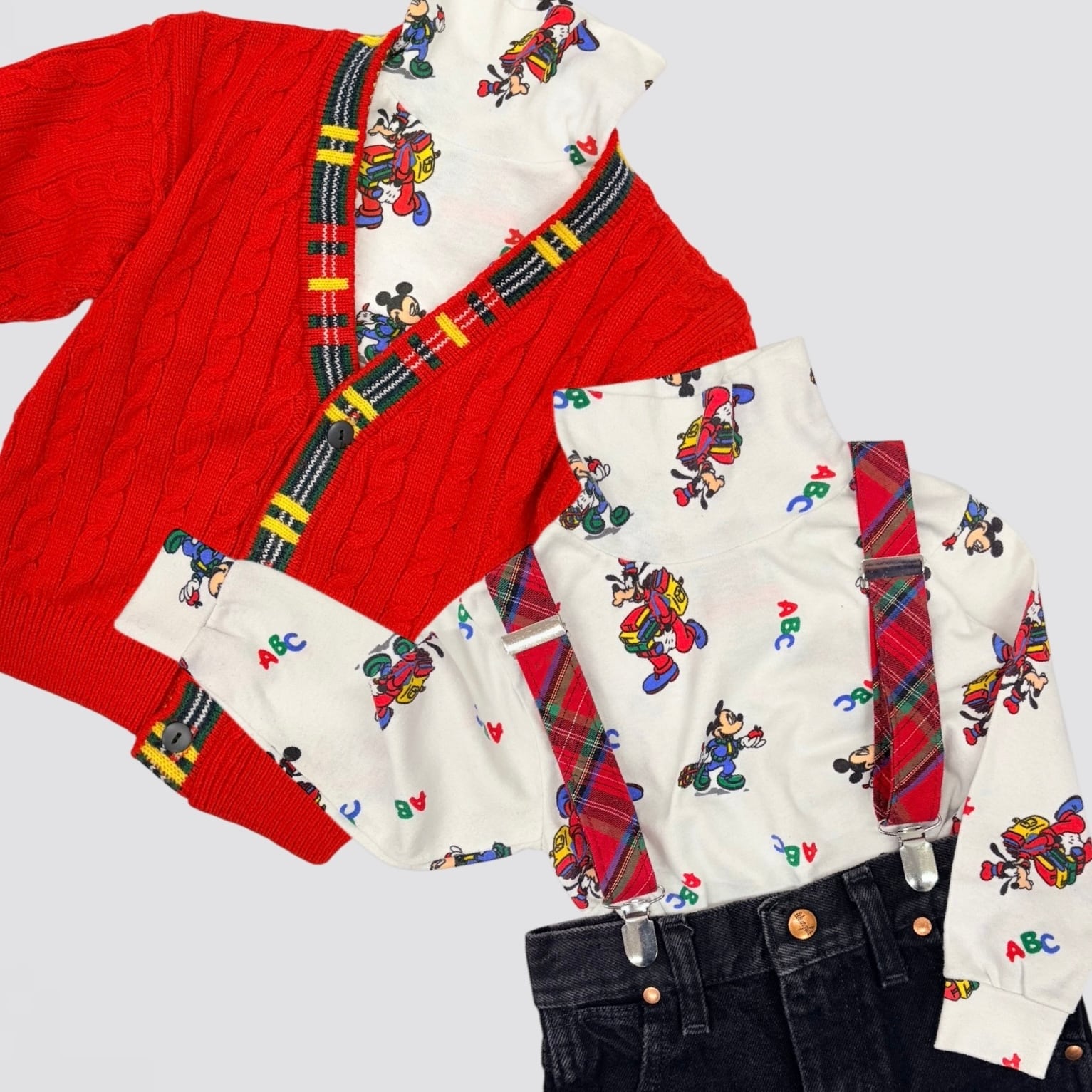 【3-4T】USA製 Disney Mickey&Goofy print high-neck top ディズニー ミッキー&グーフィー ハイネック カットソー
