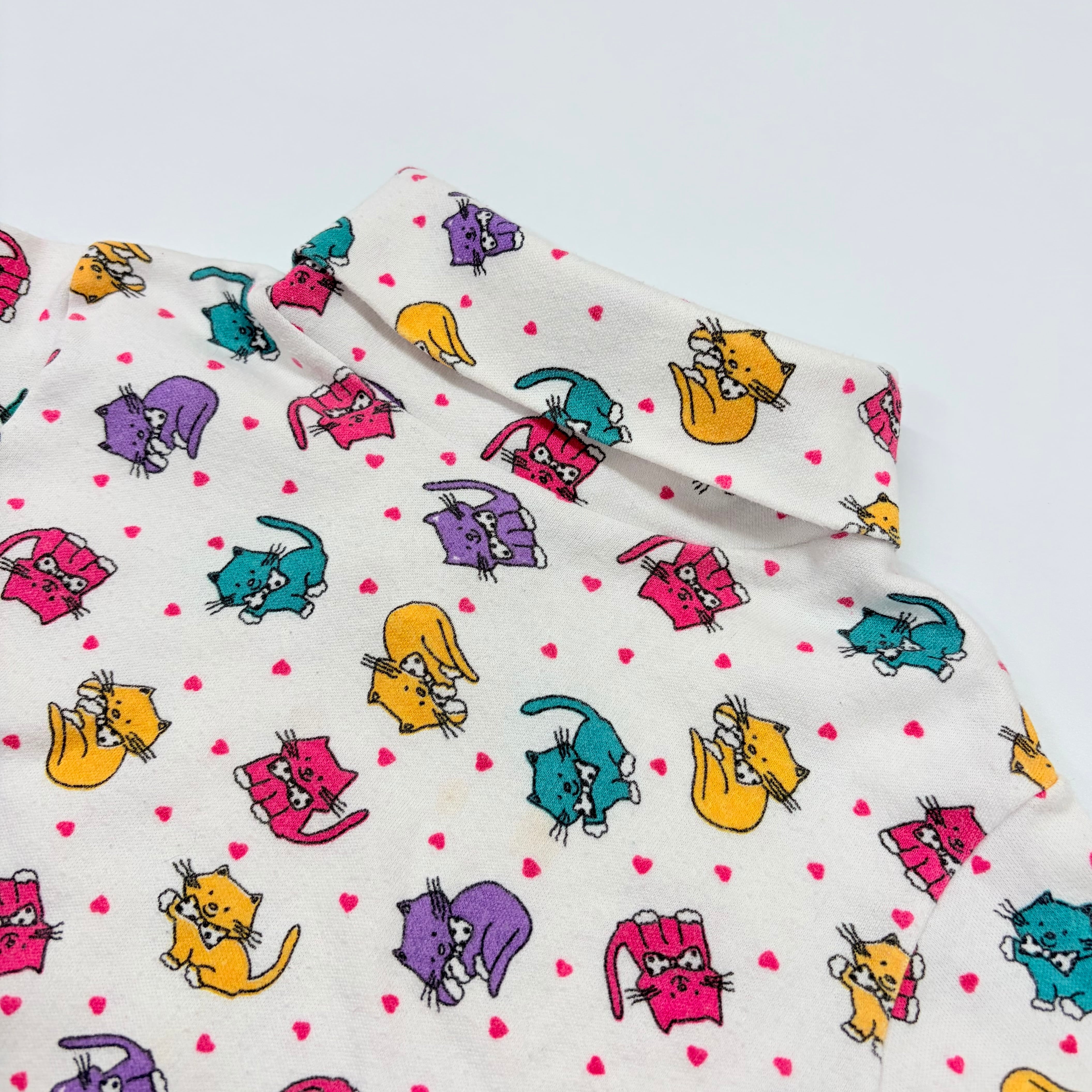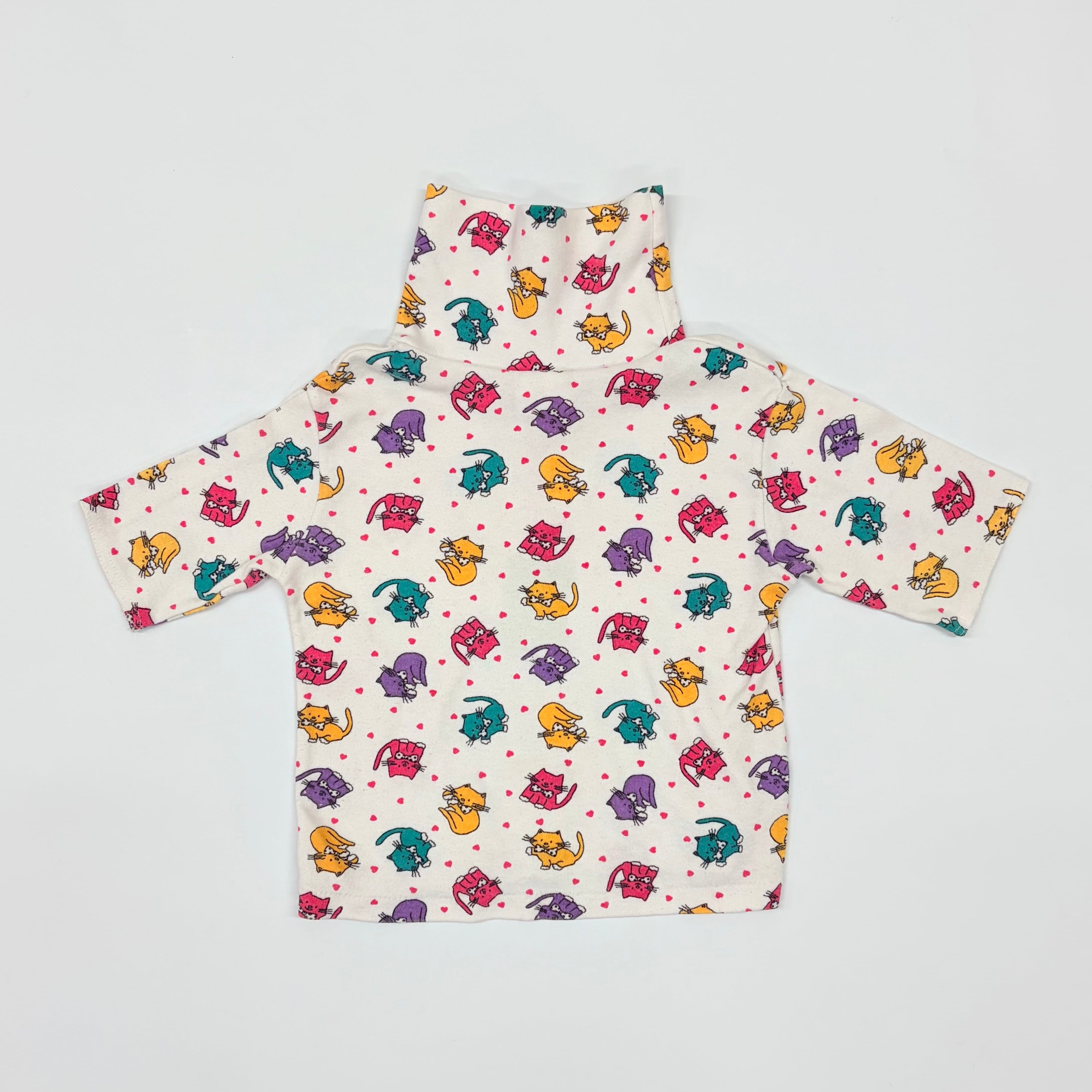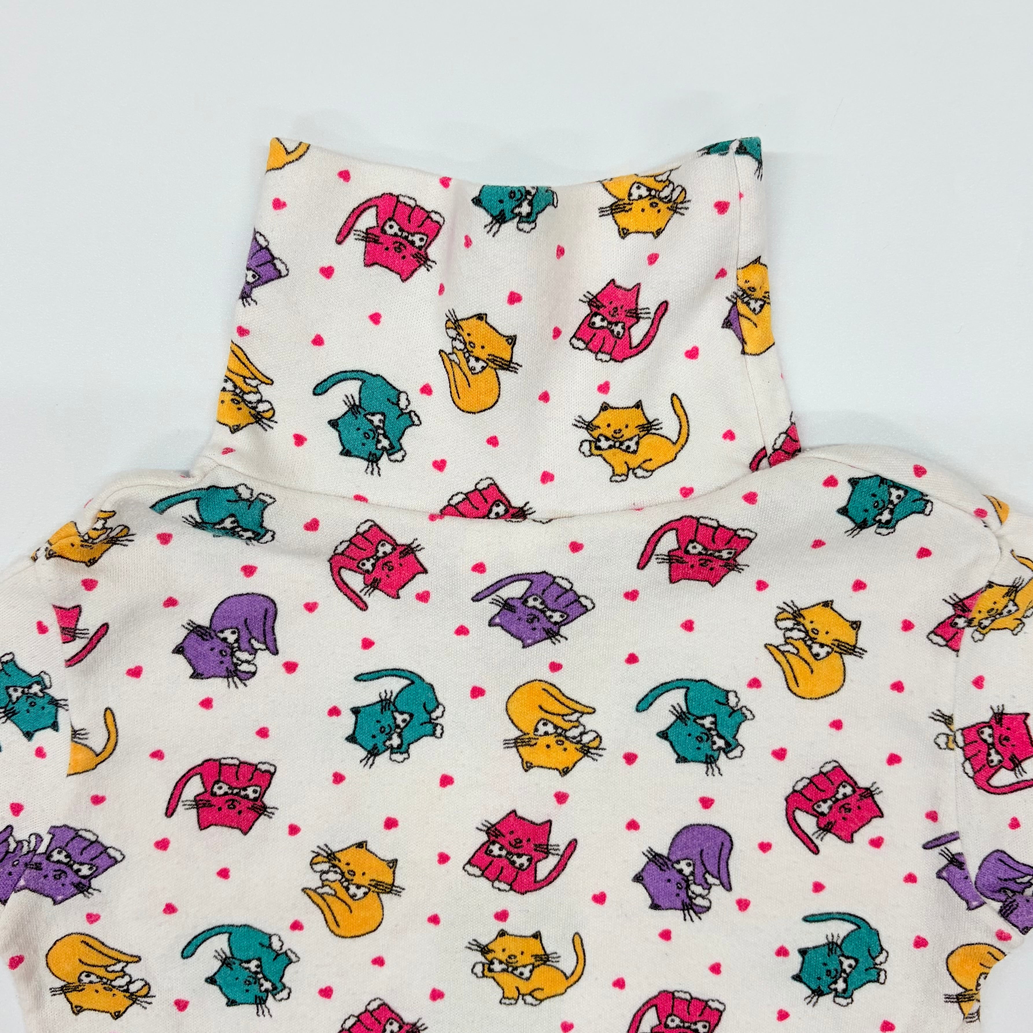 【2T】USA製 cat print high-neck top ねこちゃん ハイネック カットソー 五分丈袖