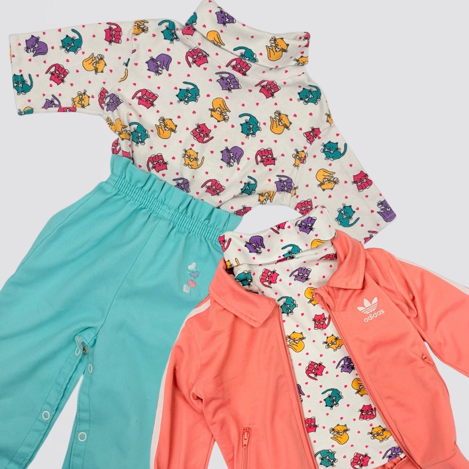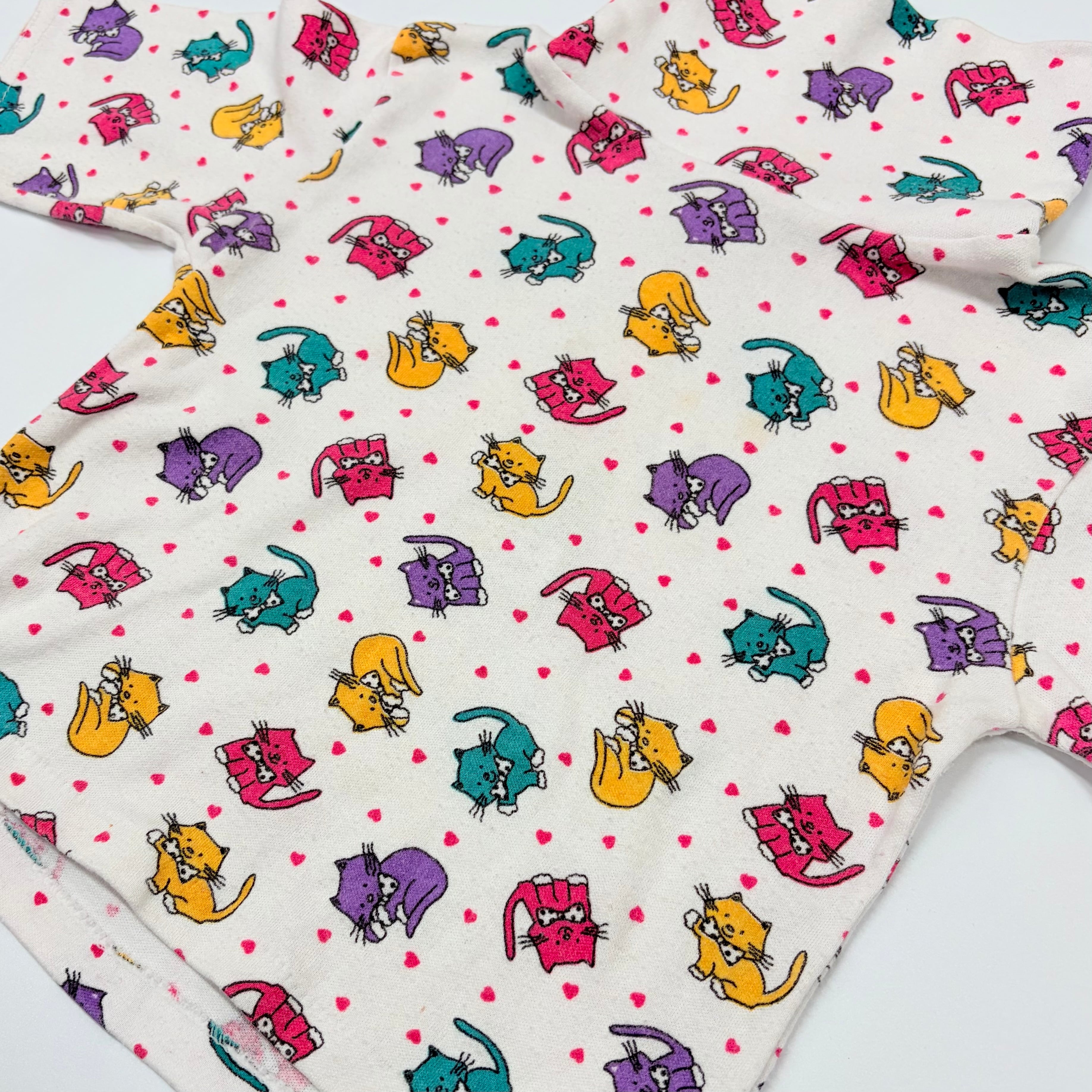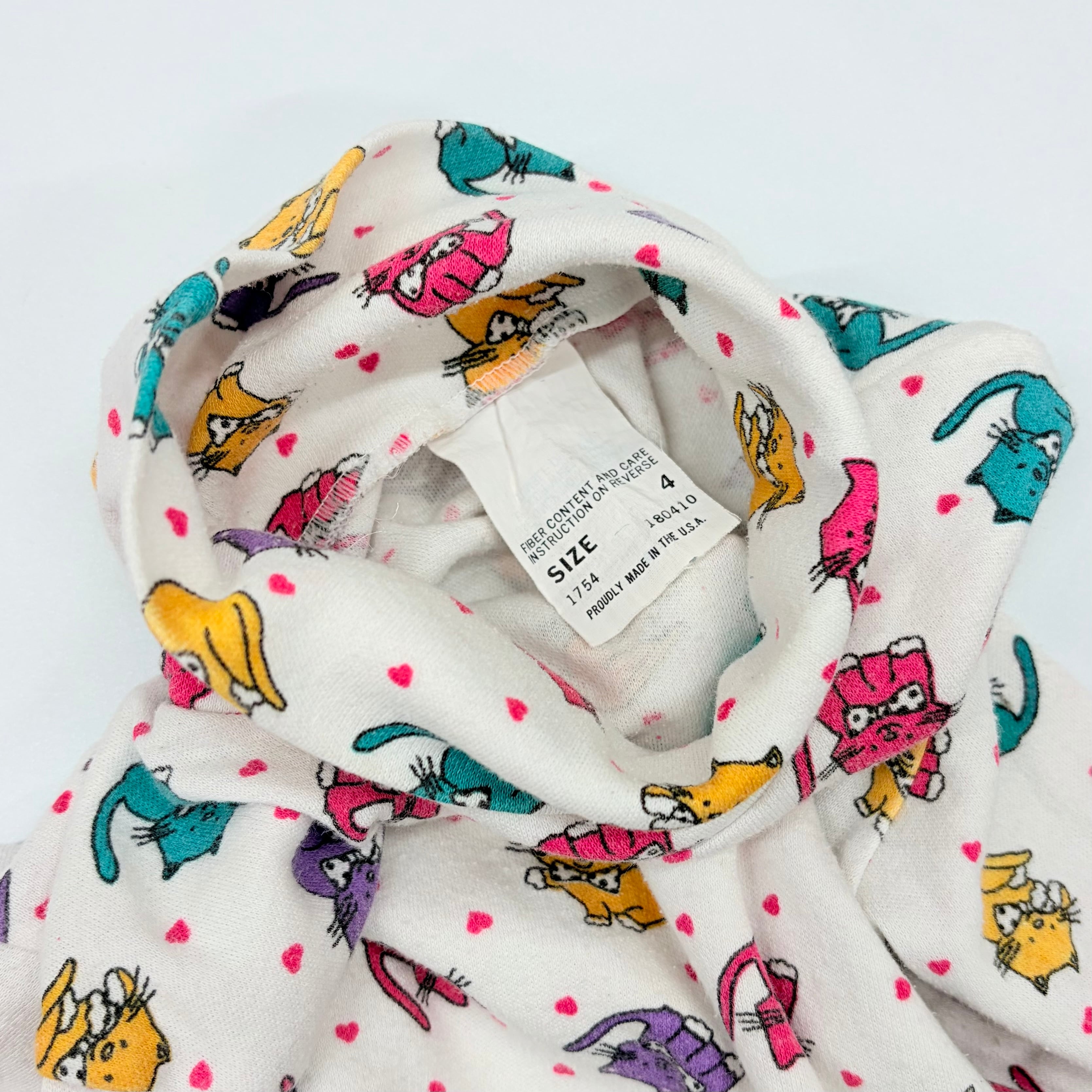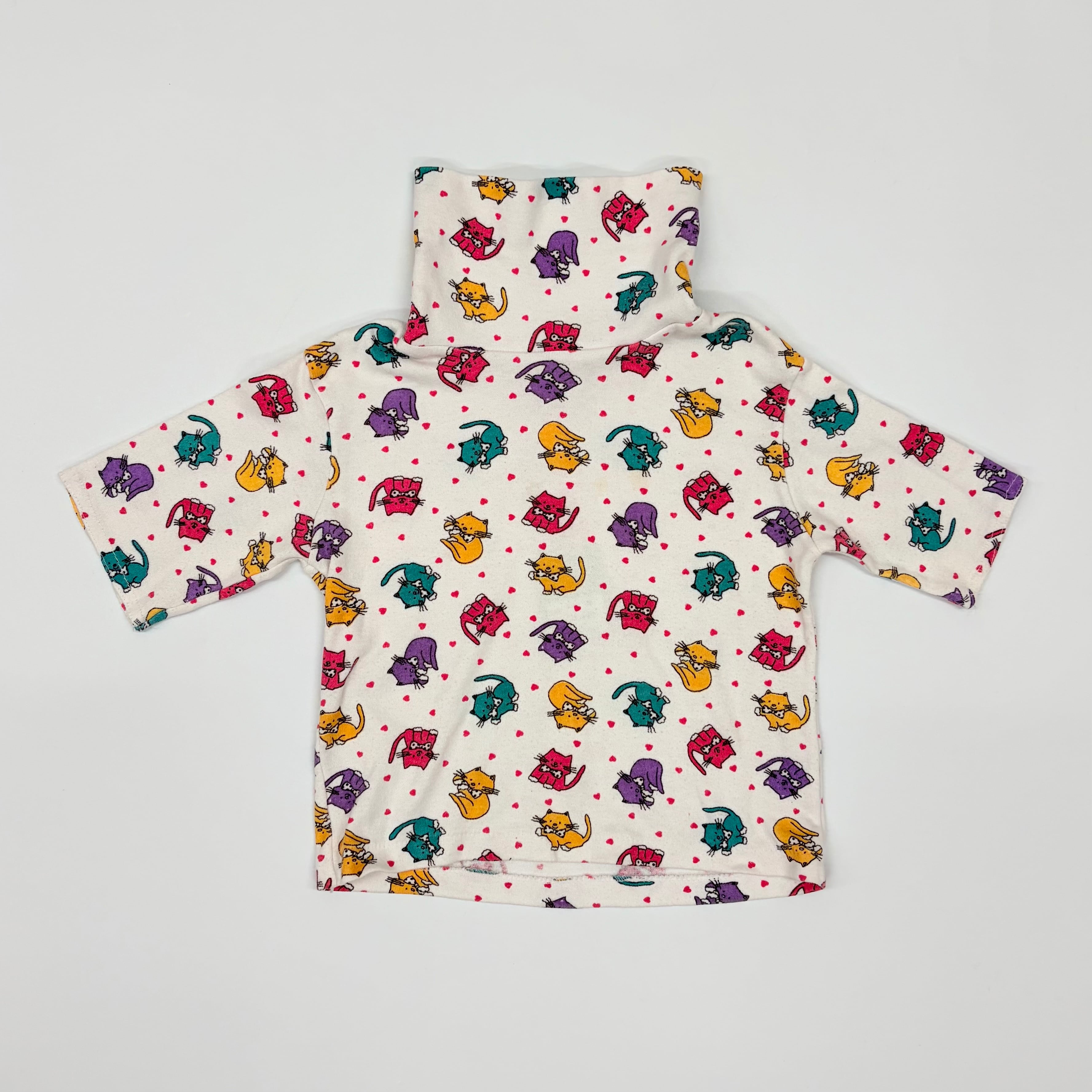 【2T】USA製 cat print high-neck top ねこちゃん ハイネック カットソー 五分丈袖