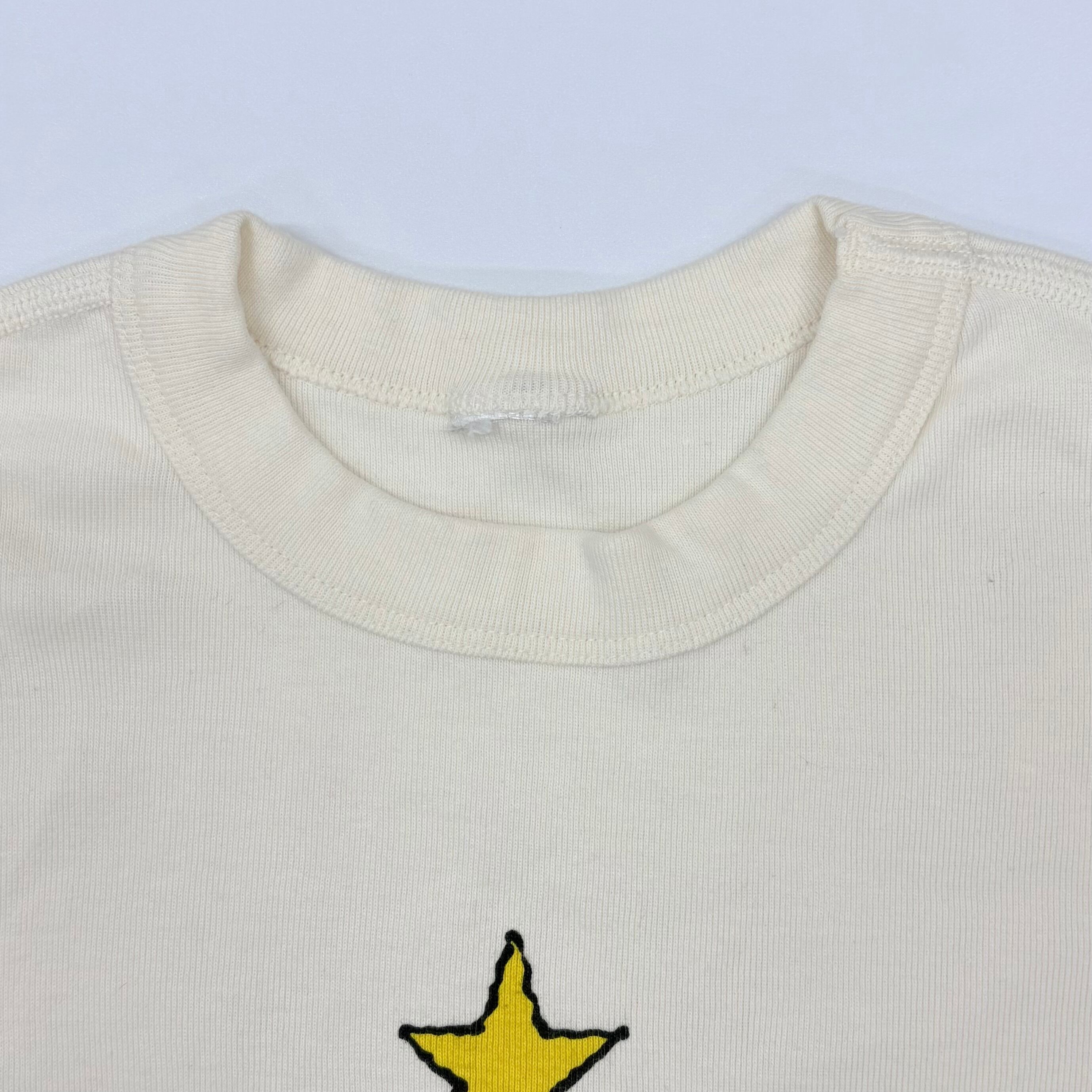 〈参考〉恐らく元々10-12T向けですが、かなり細身なので目安4-6Tとしています。身丈や袖丈サイズに合わせるとタイト、身幅サイズに合わせると丈や袖は長くなります。ワンピースとしての着用もオススメです。