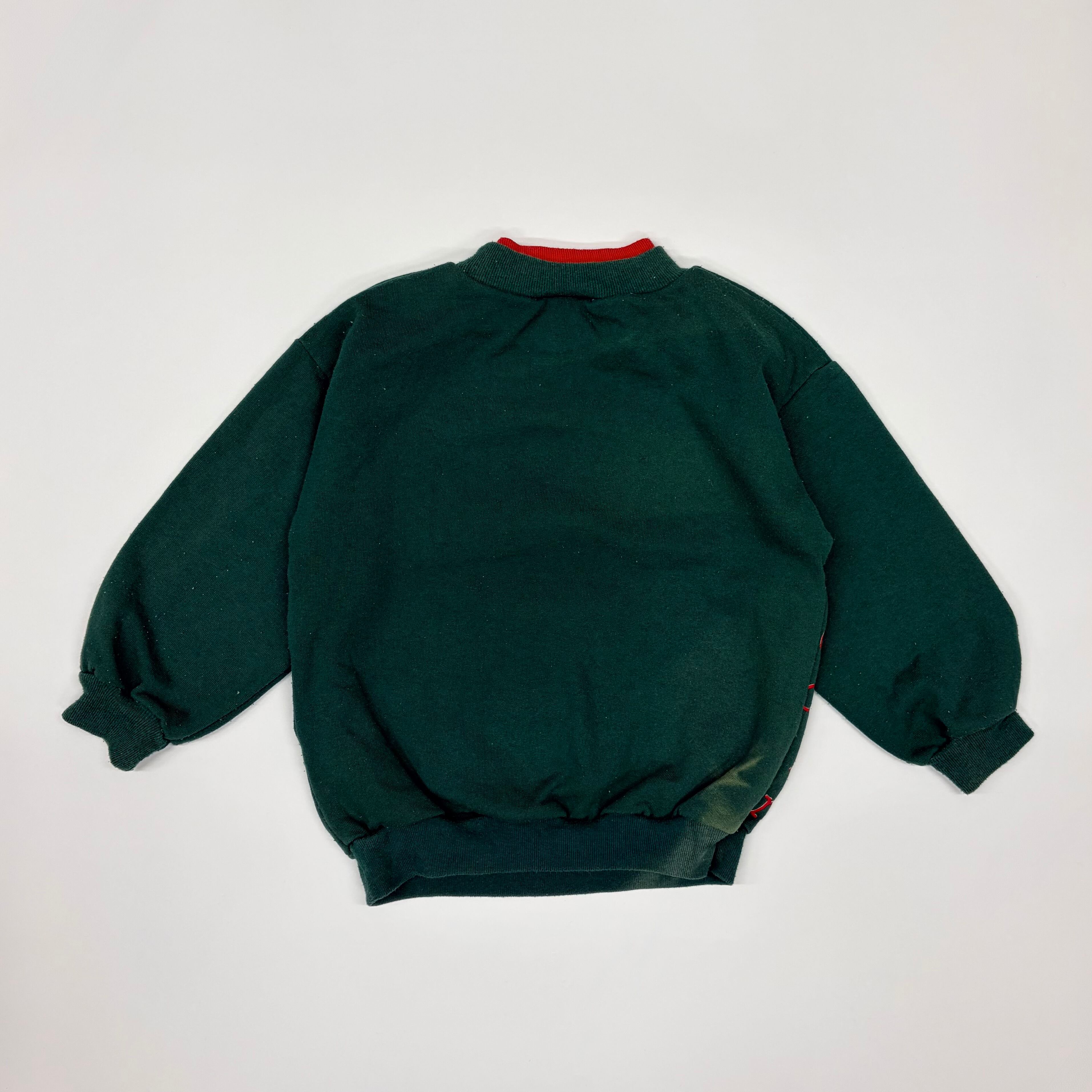 大きく色落ちが見られます。その他毛玉等全体的に使用感はありますが、古着の風合いとしてお楽しみいただける方にはオススメです。