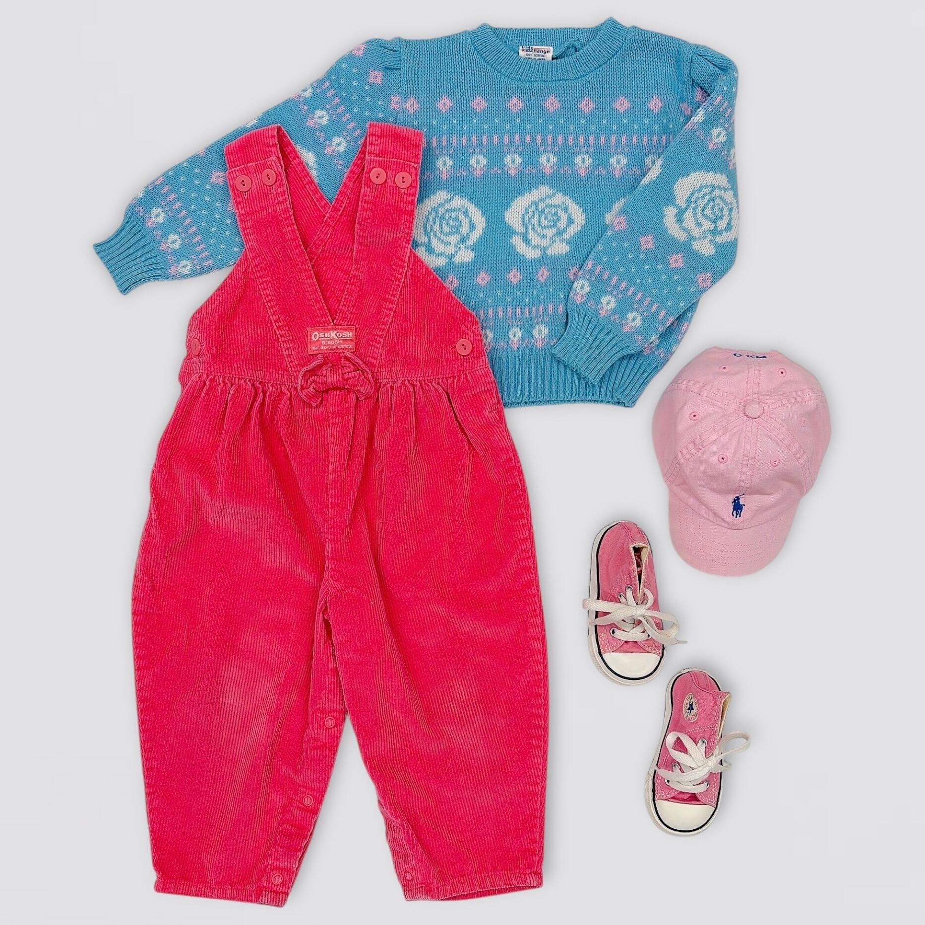 【2-3T】USA製 OSHKOSH corduroy overall pink オシュコシュ コーデュロイ オーバーオール ピンク リボン