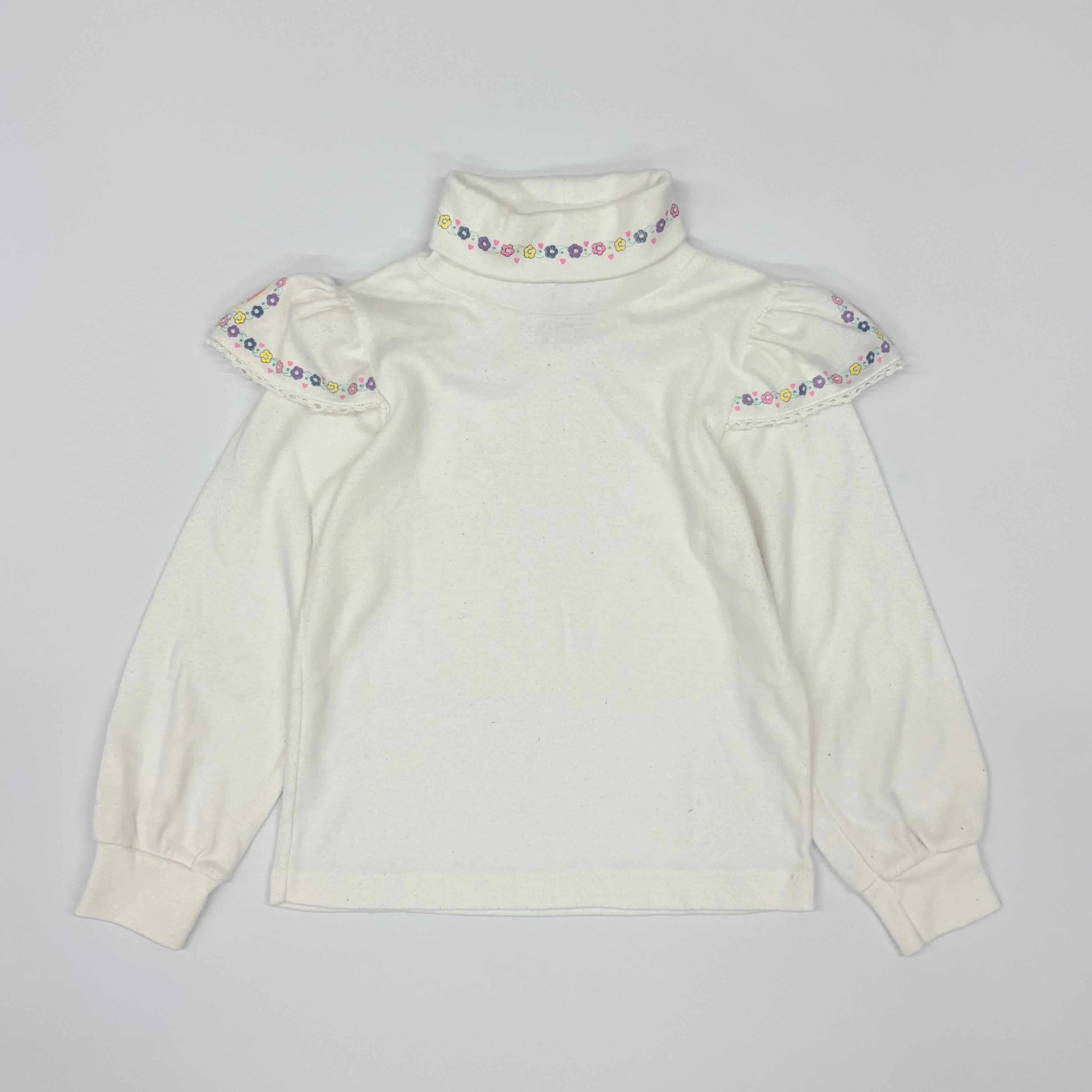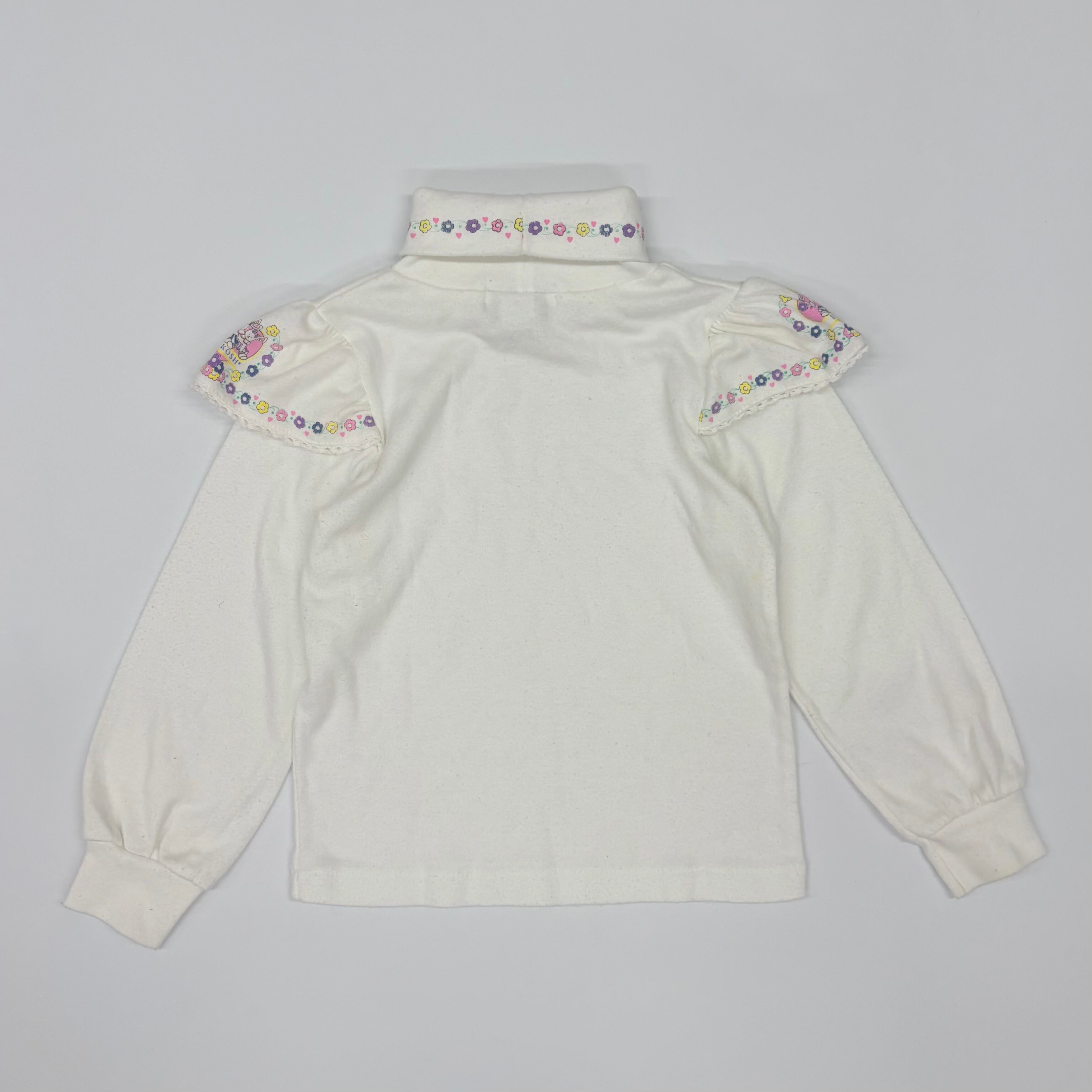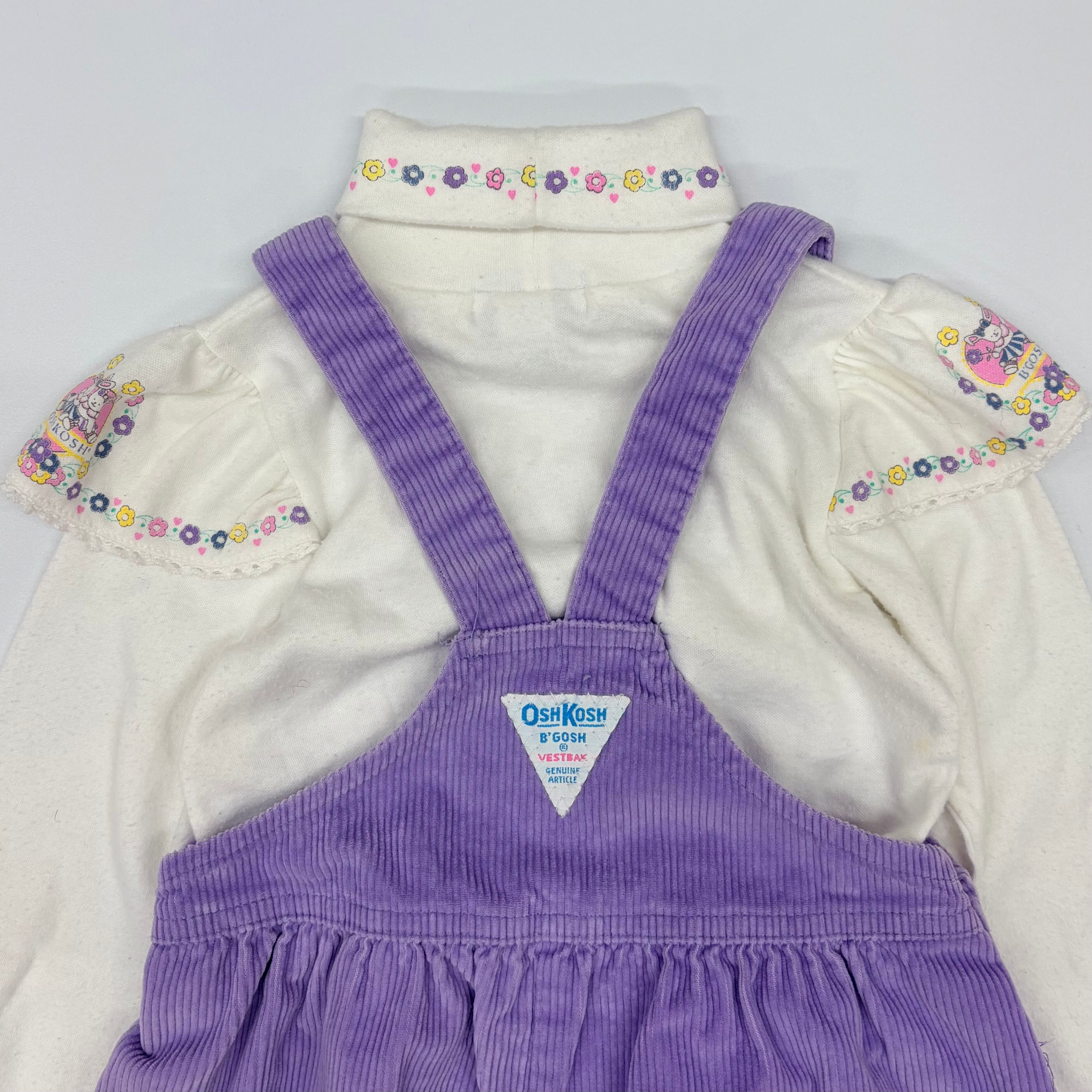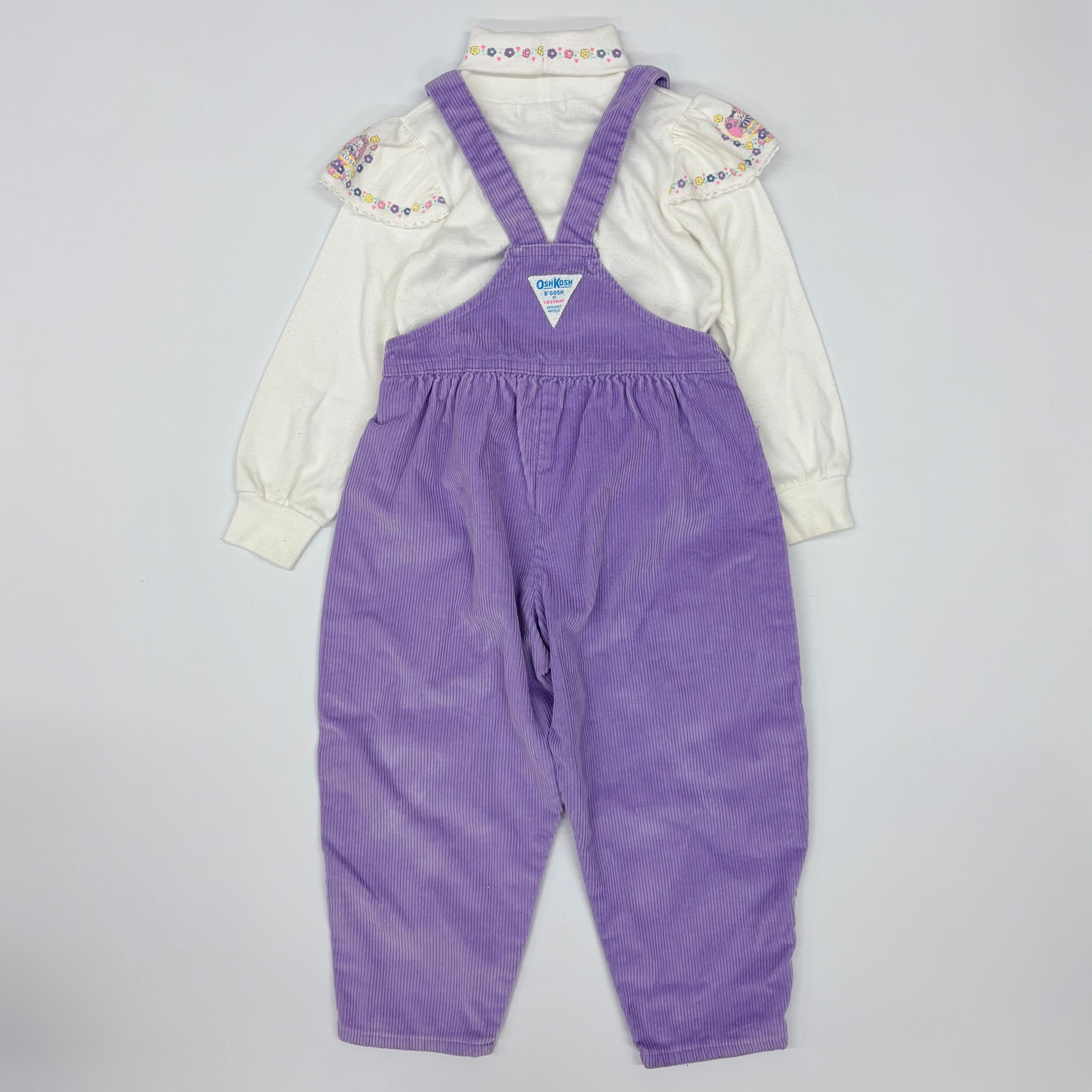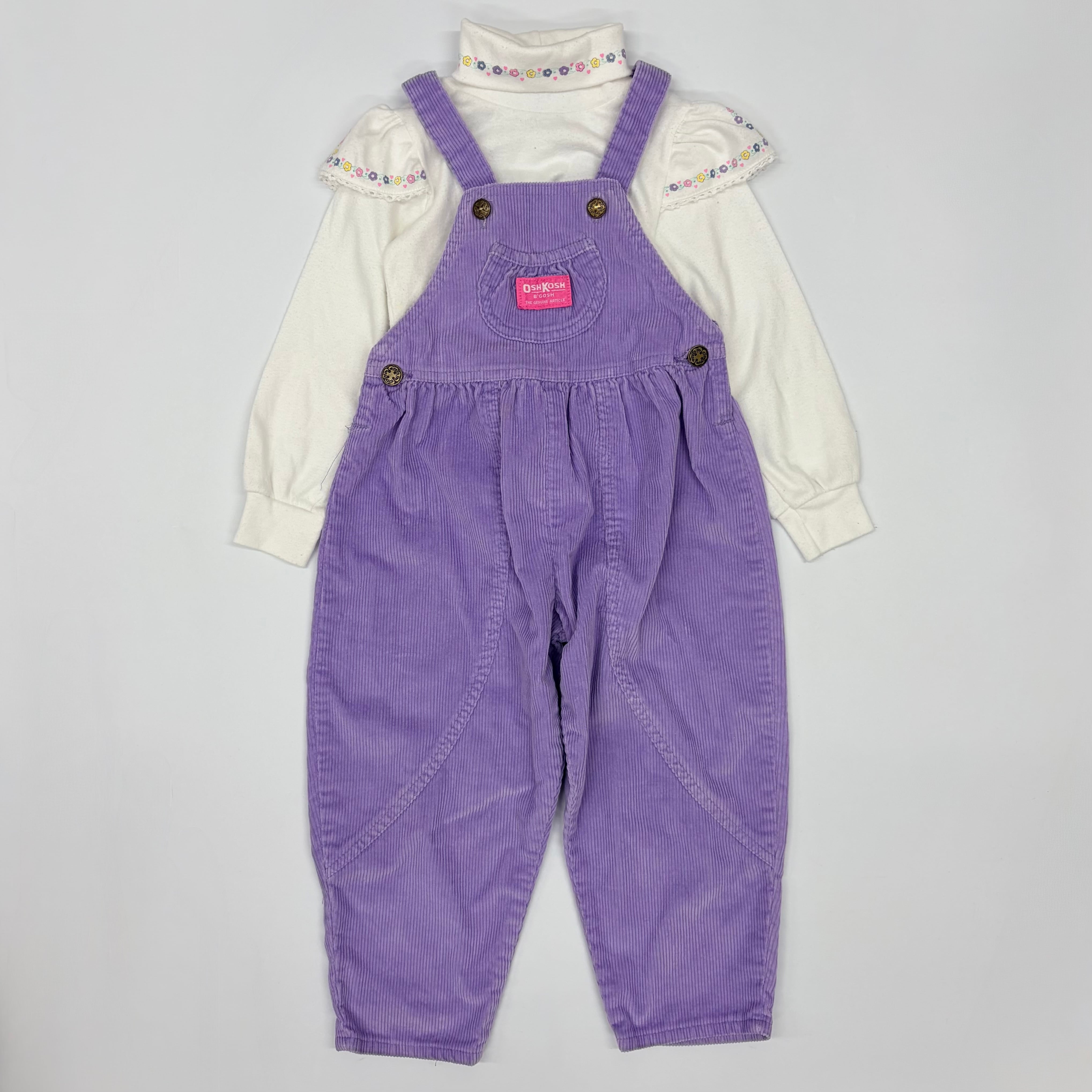 【4T】USA製 OSHKOSH high-neck top & corduroy overall light-purple オシュコシュ ハイネックカットソー&コーデュロイオーバーオール(セット) ラベンダー 薄紫 うさぎ 花