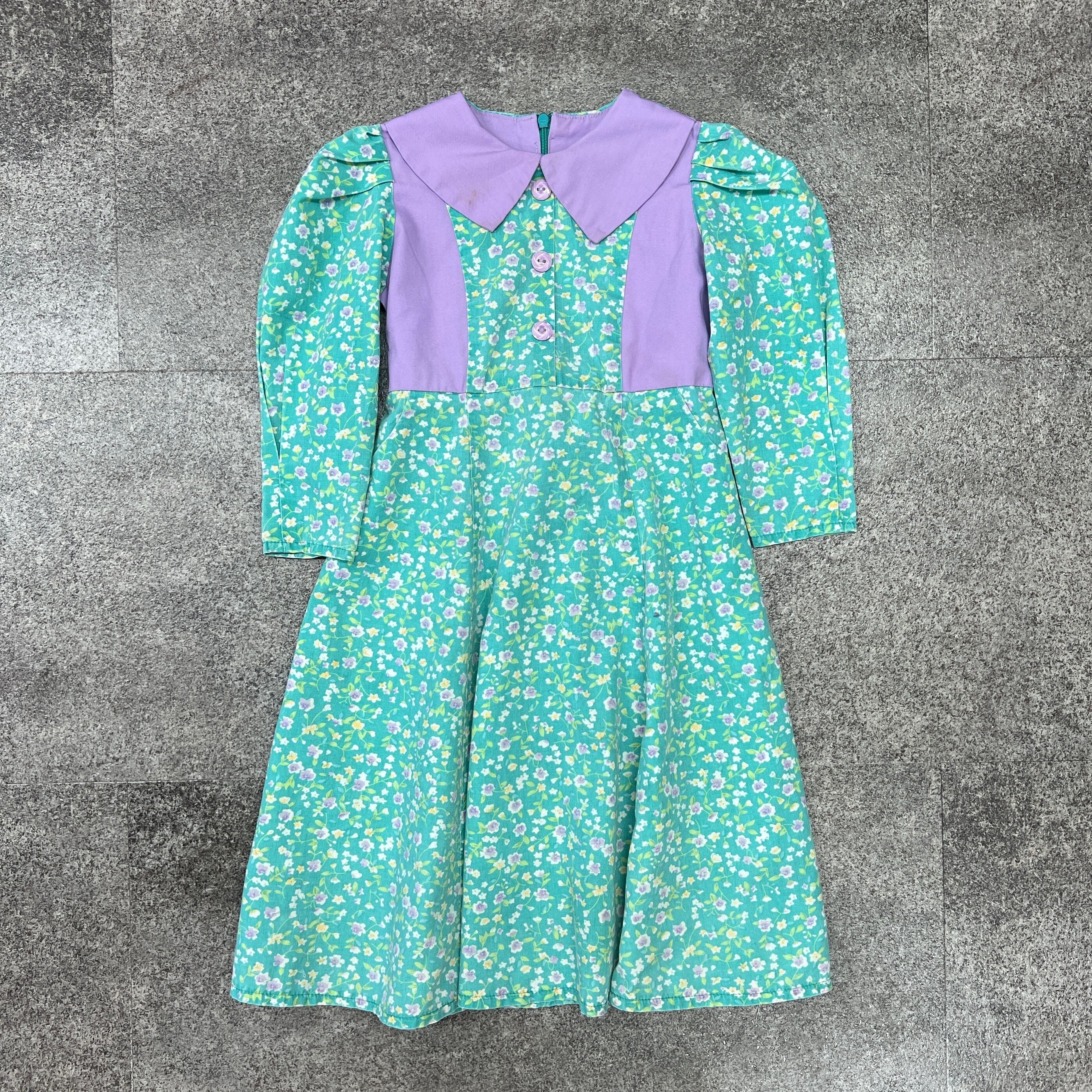 【3-5T】vintage green flower dress グリーン 小花柄ワンピース