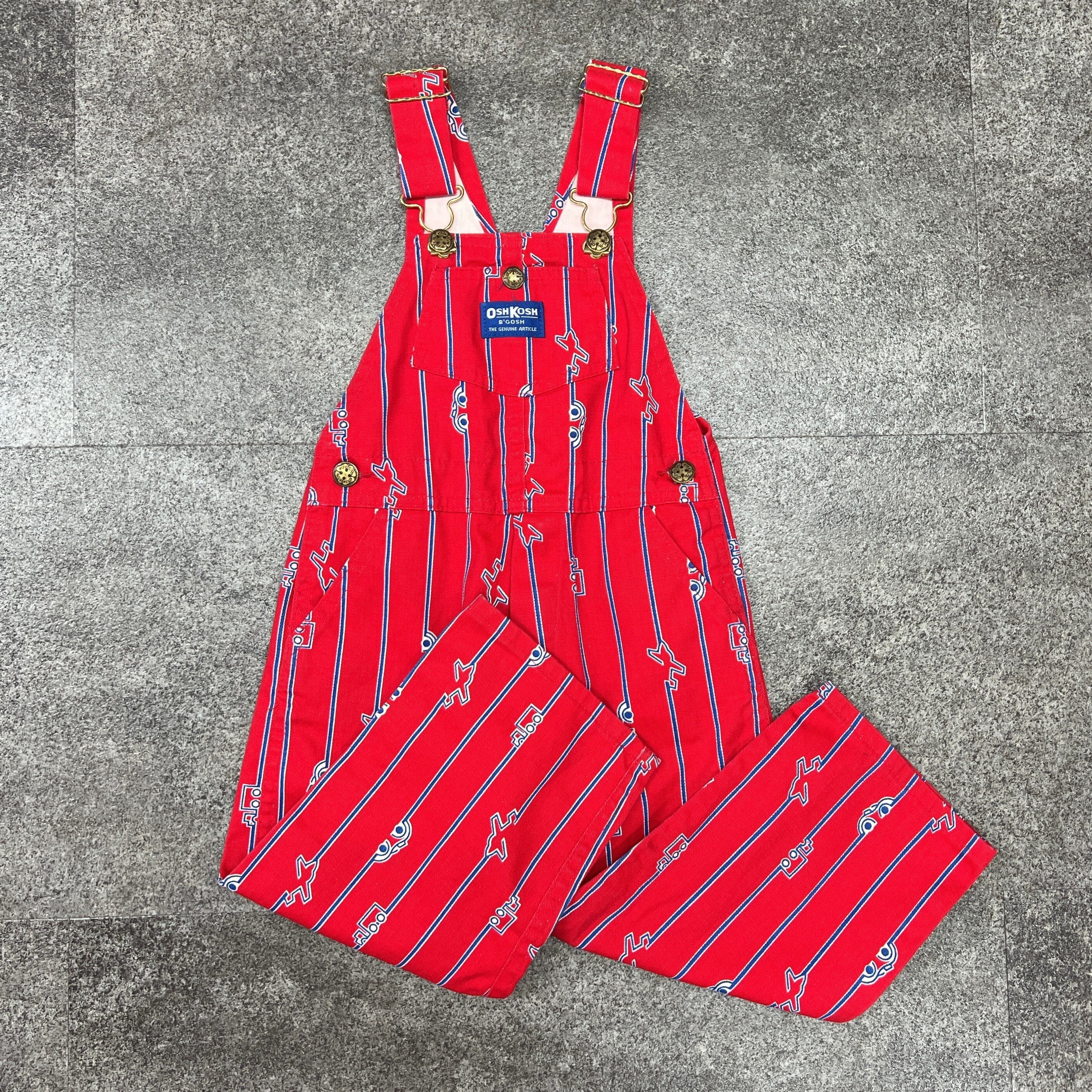 【4T】USA製 OSHKOSH stripe print overall オシュコシュ オーバーオール ストライプ 赤