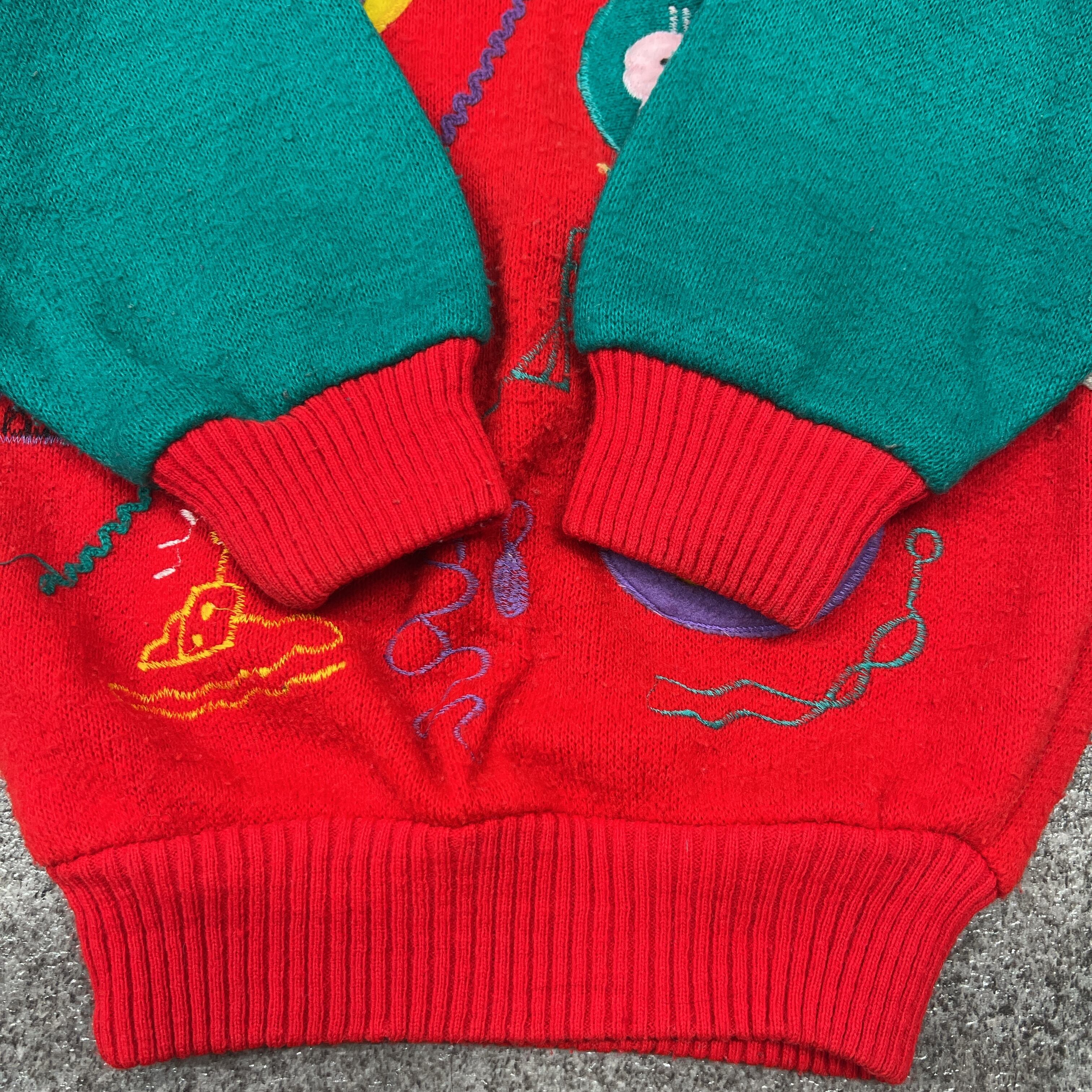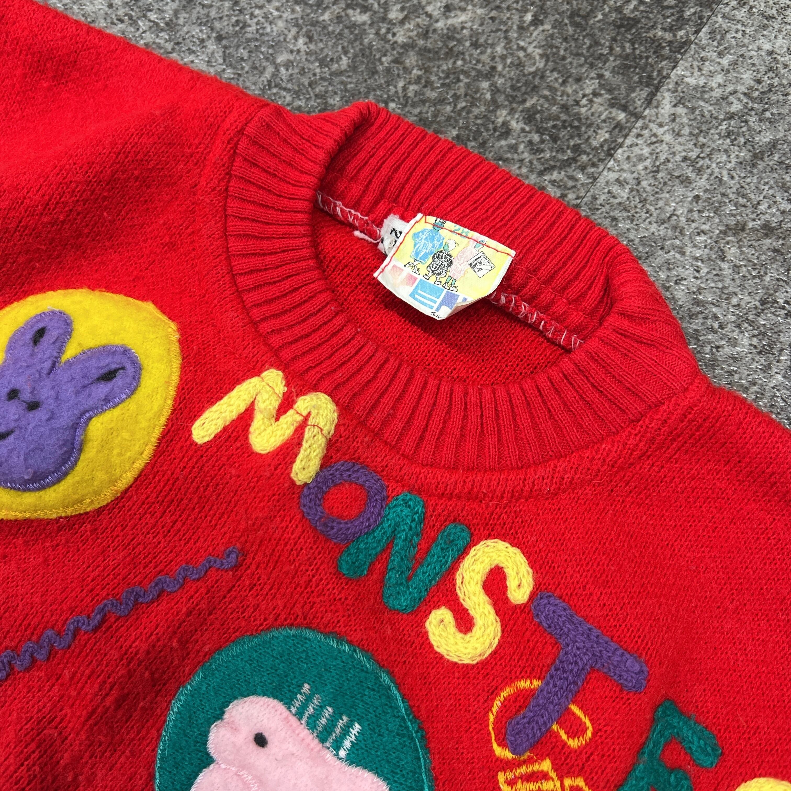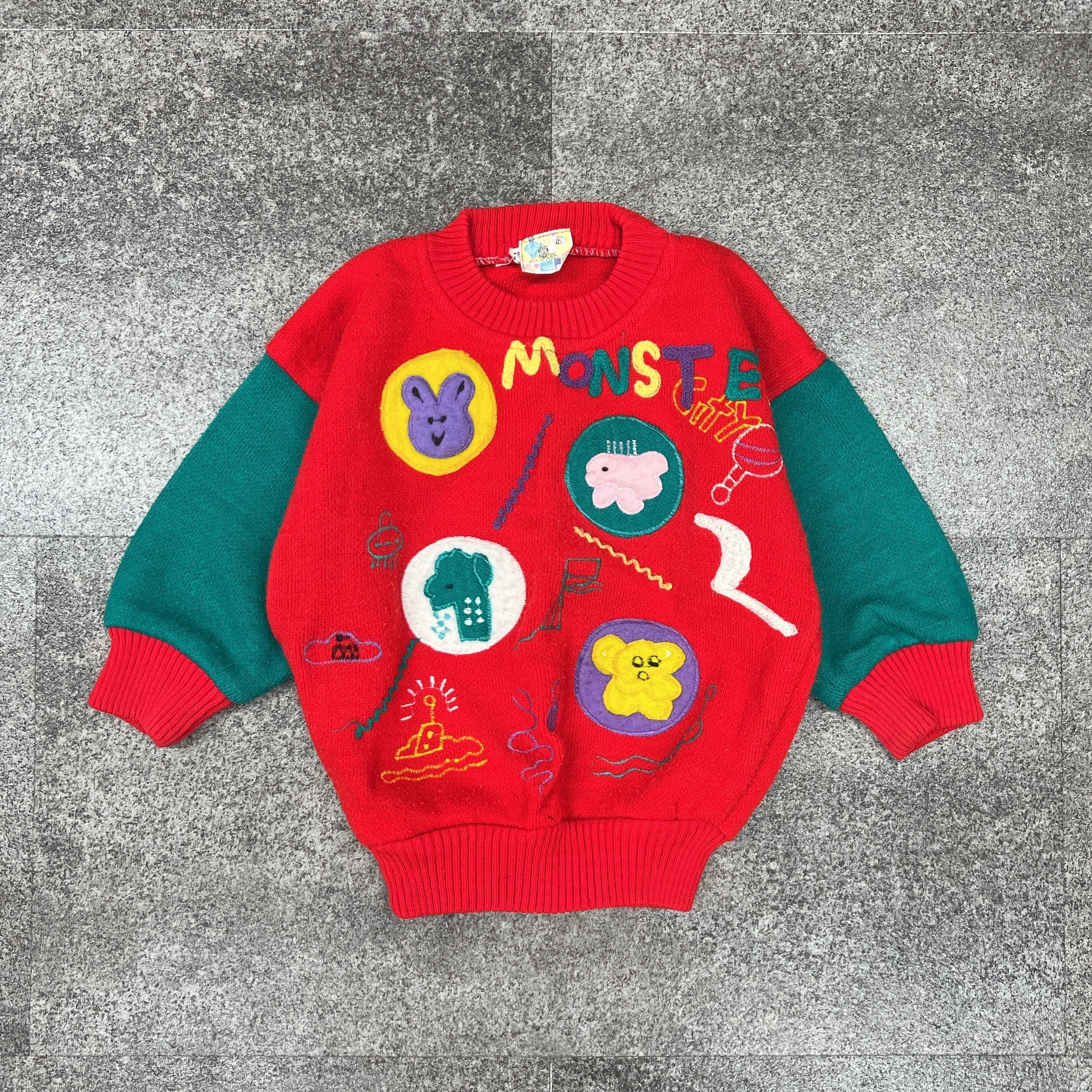 【3-4T】monster animal pattern knit/red モンスター アニマル柄 ニット セーター 赤