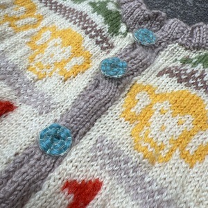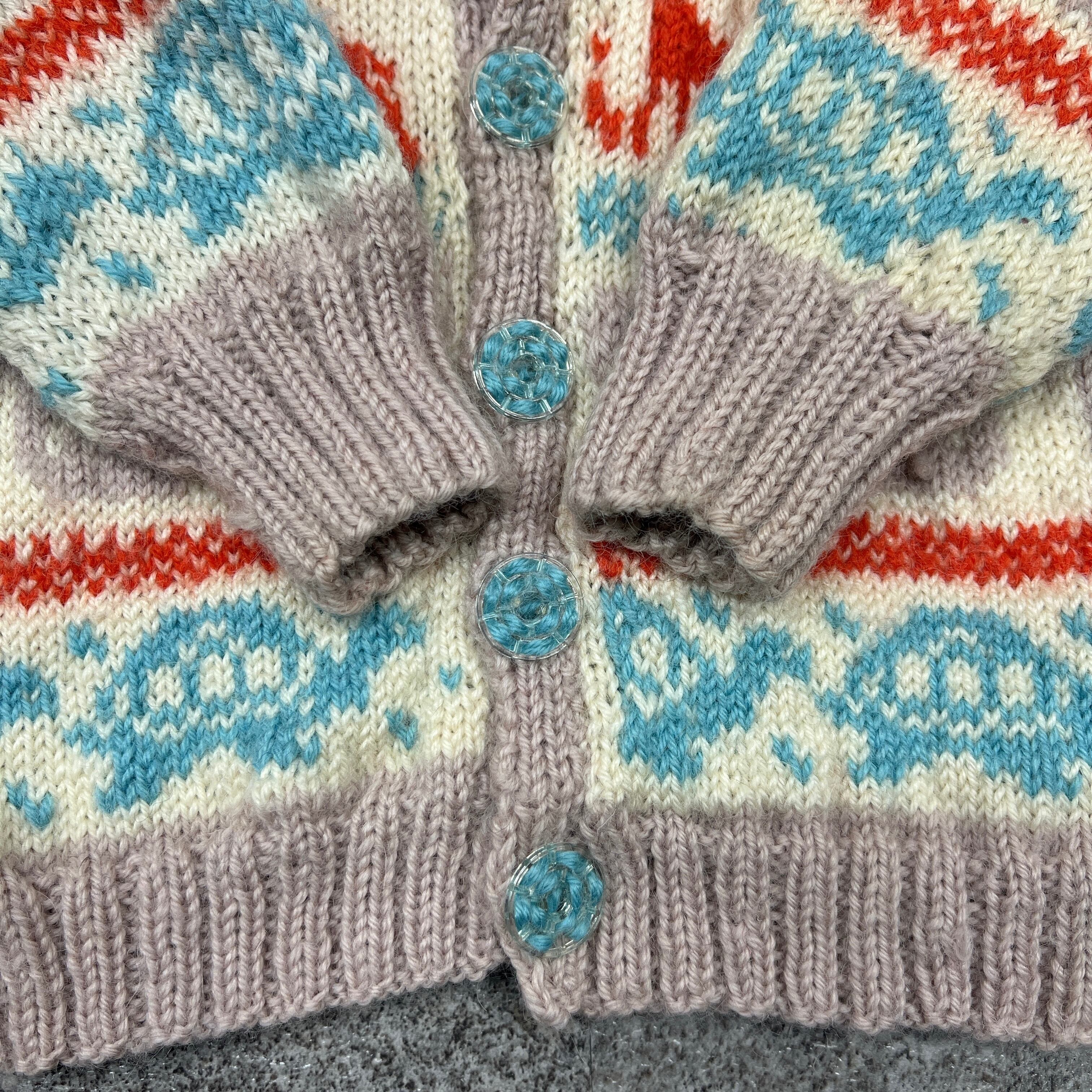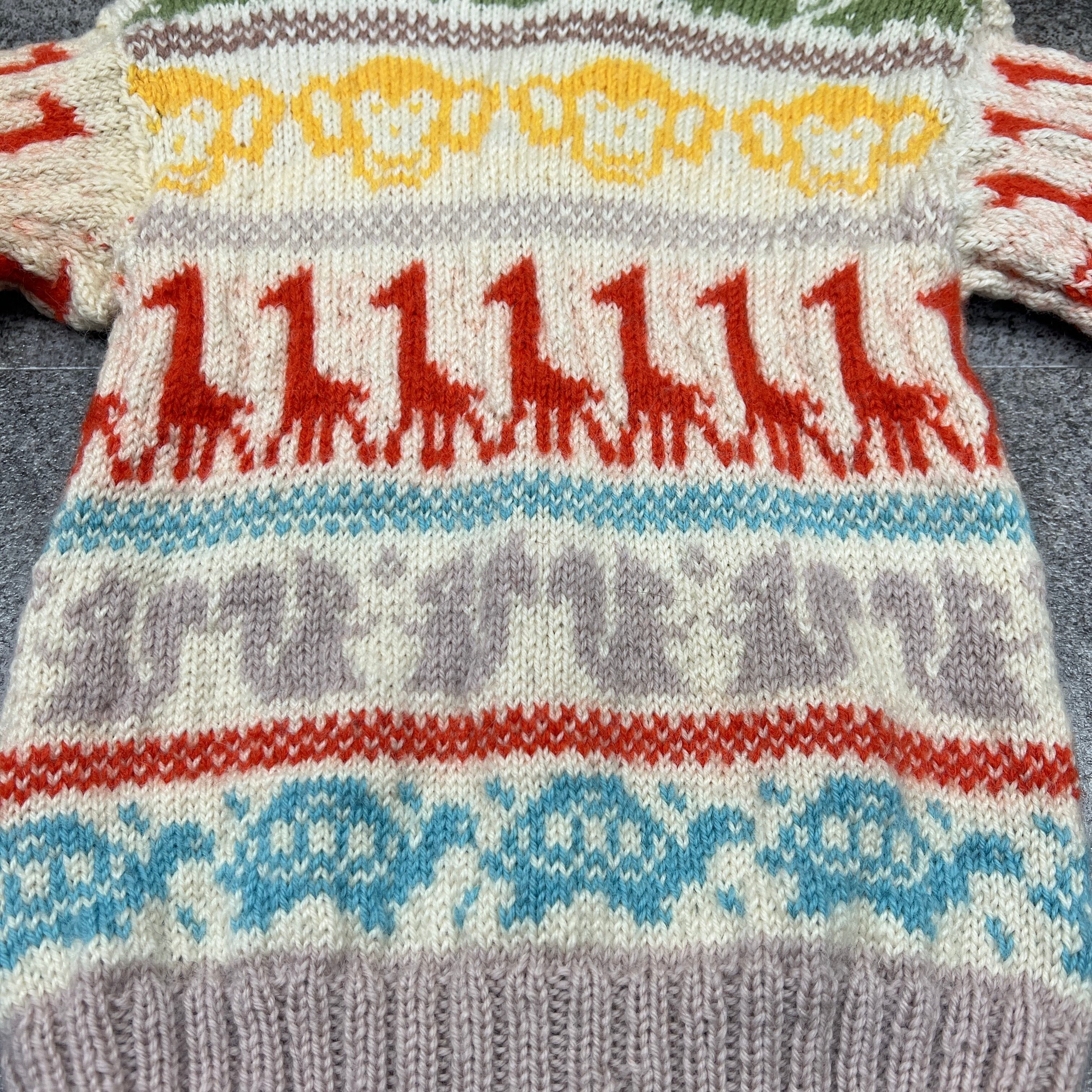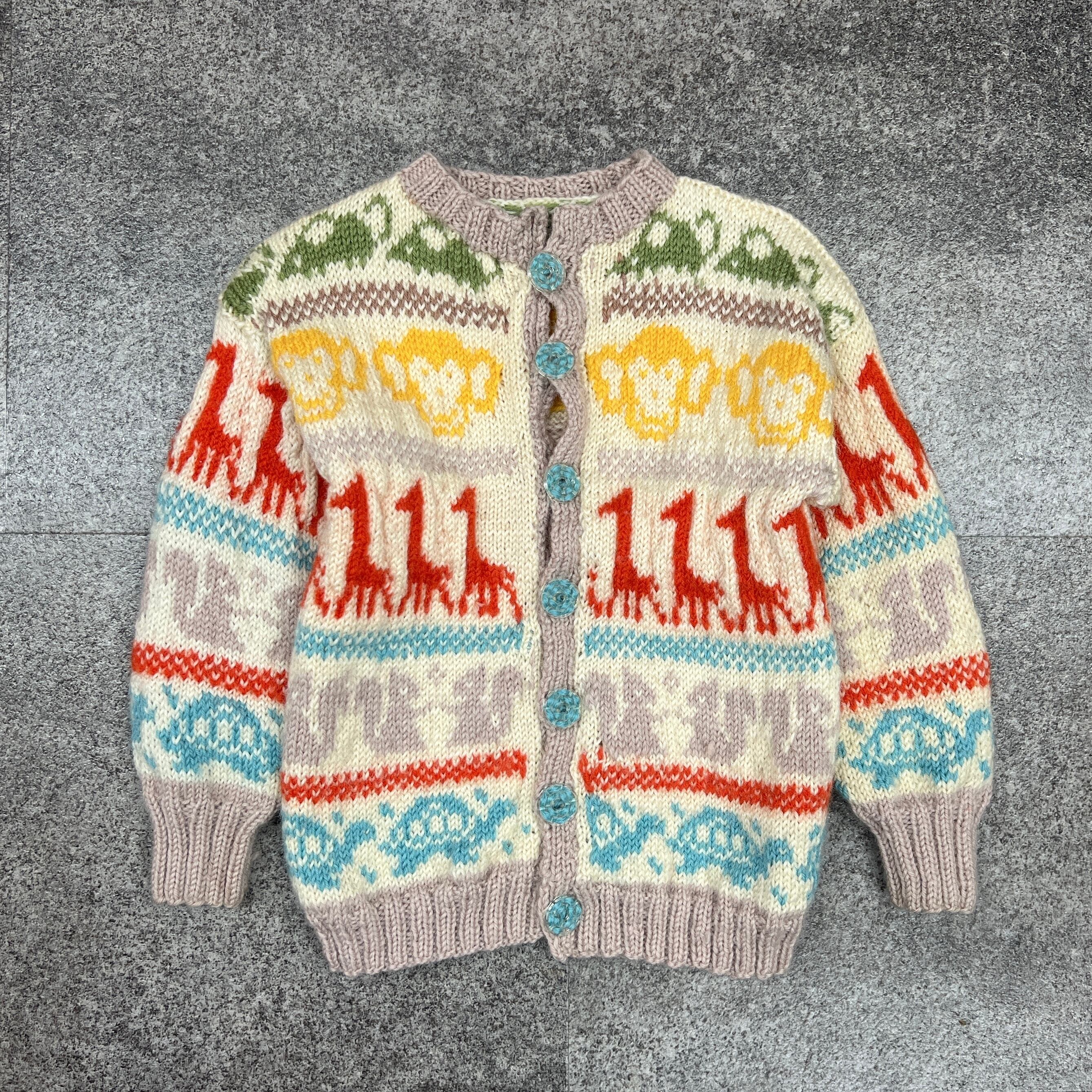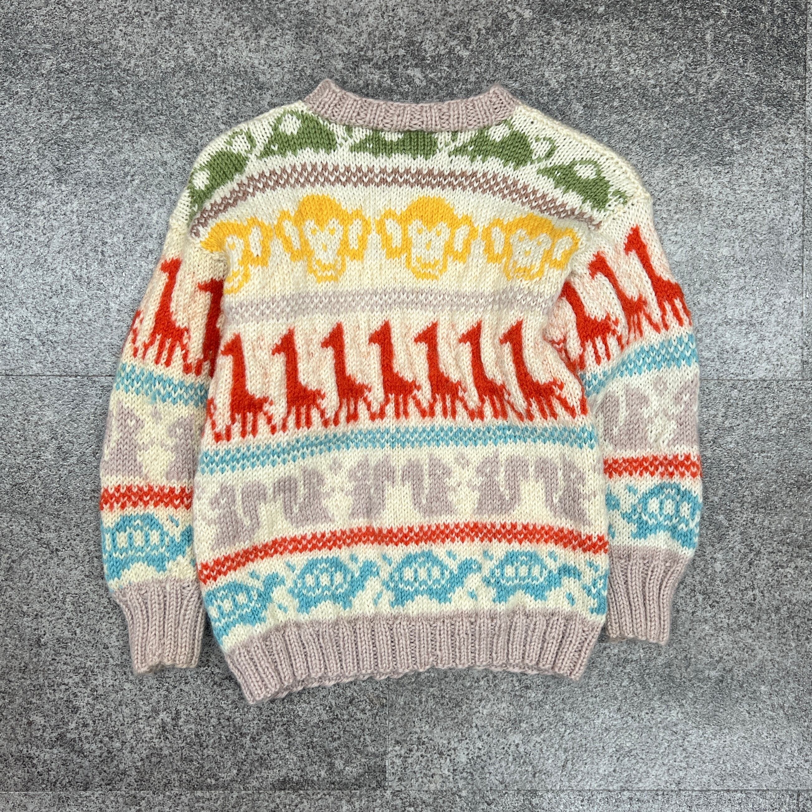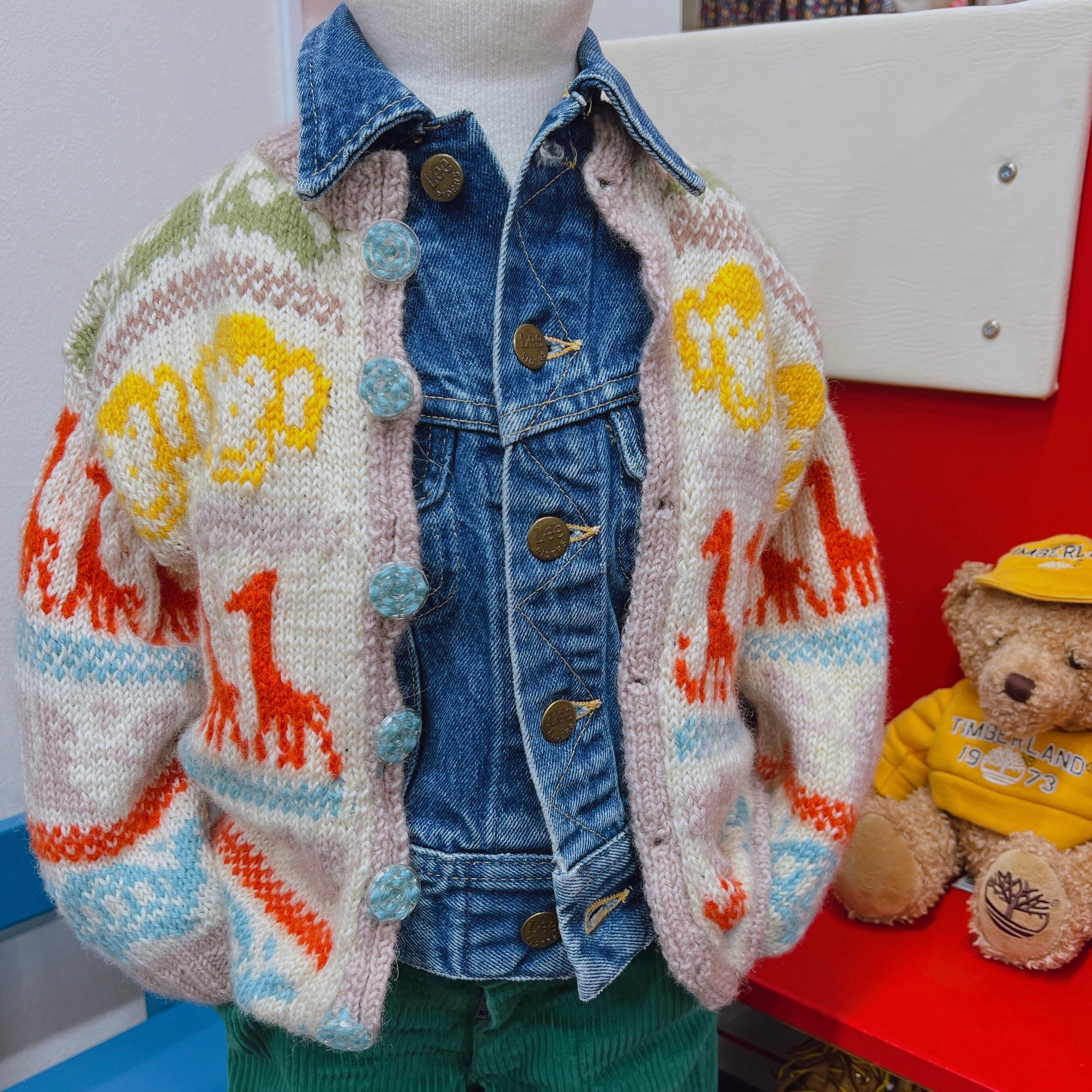 【4-5T】animal pattern knit cardigan/beige アニマル柄 ニット カーディガン ベージュ