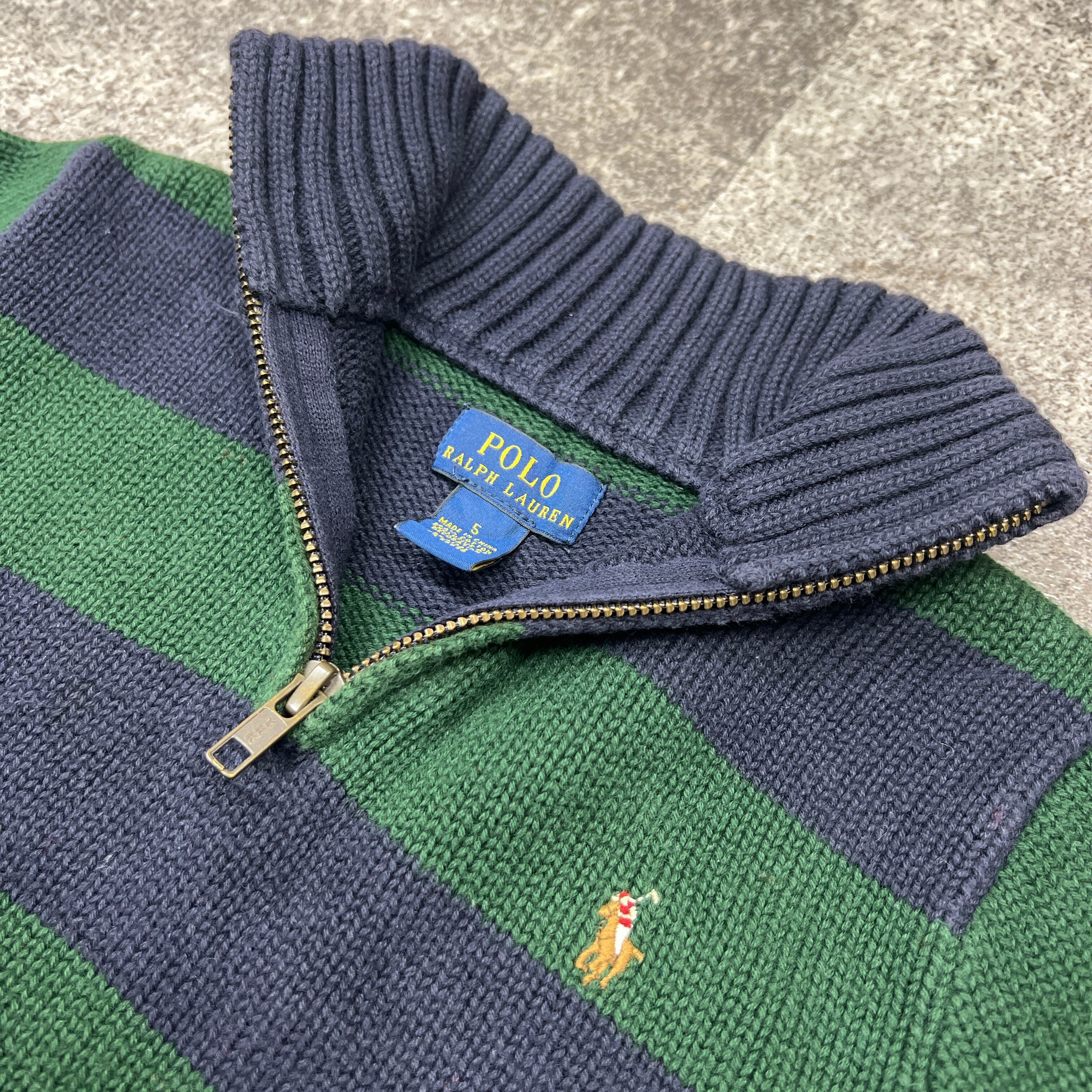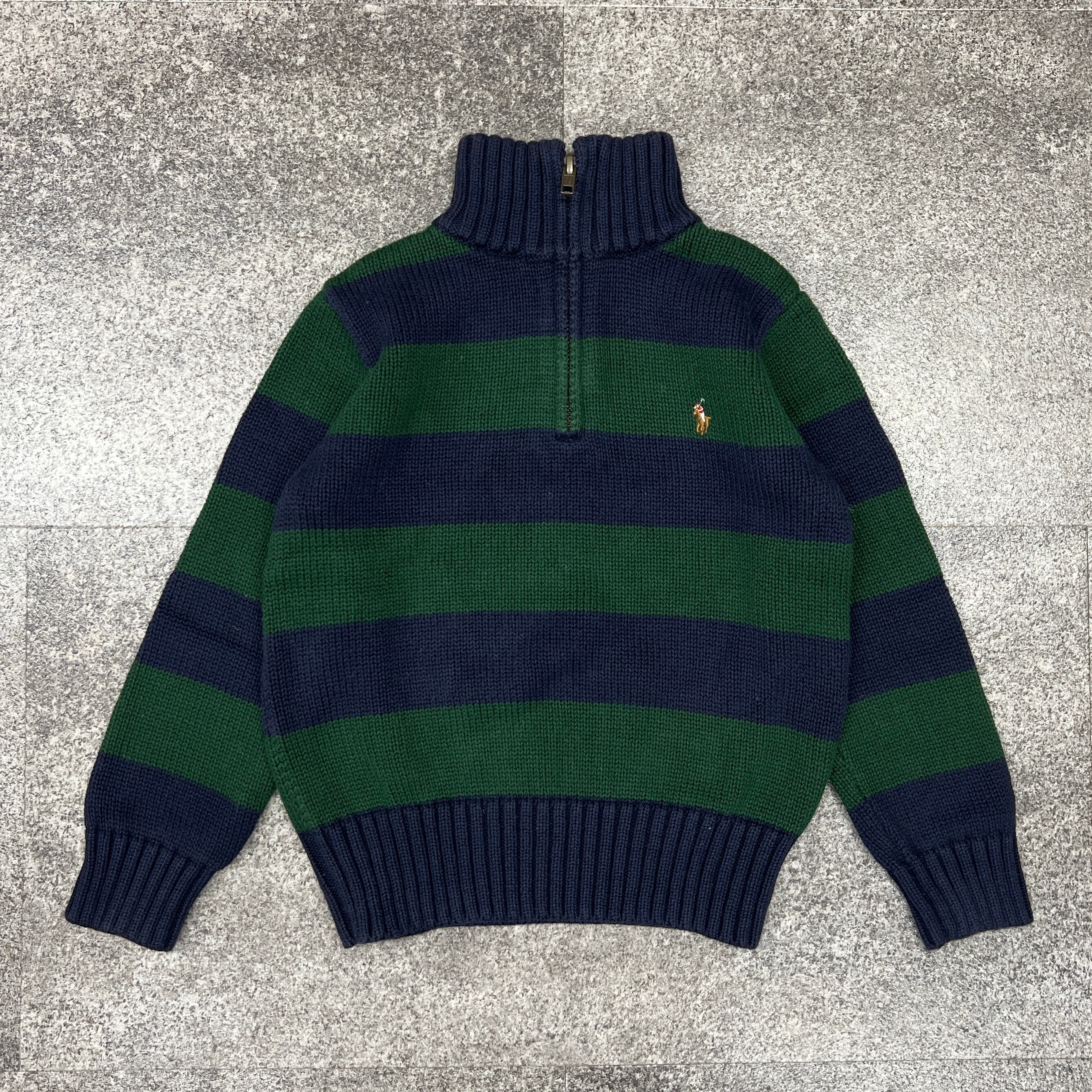 【5T】POLO Ralph Lauren/half zip knit/navy green ポロ ラルフローレン ハーフジップ ニット セーター. 紺x緑