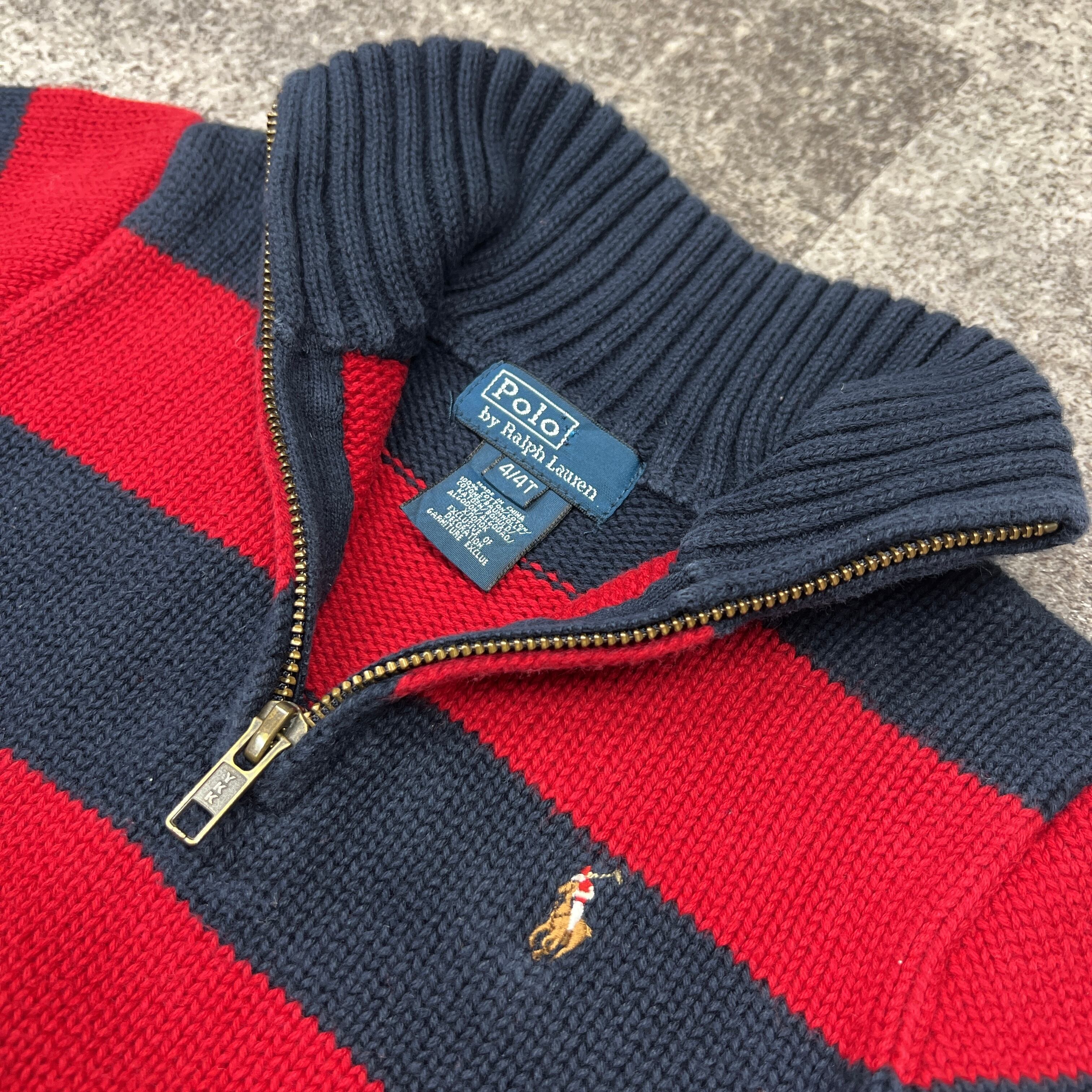 【4T】POLO Ralph Lauren/half zip knit/navy red ポロ ラルフローレン ハーフジップ ニット セーター. 紺x赤
