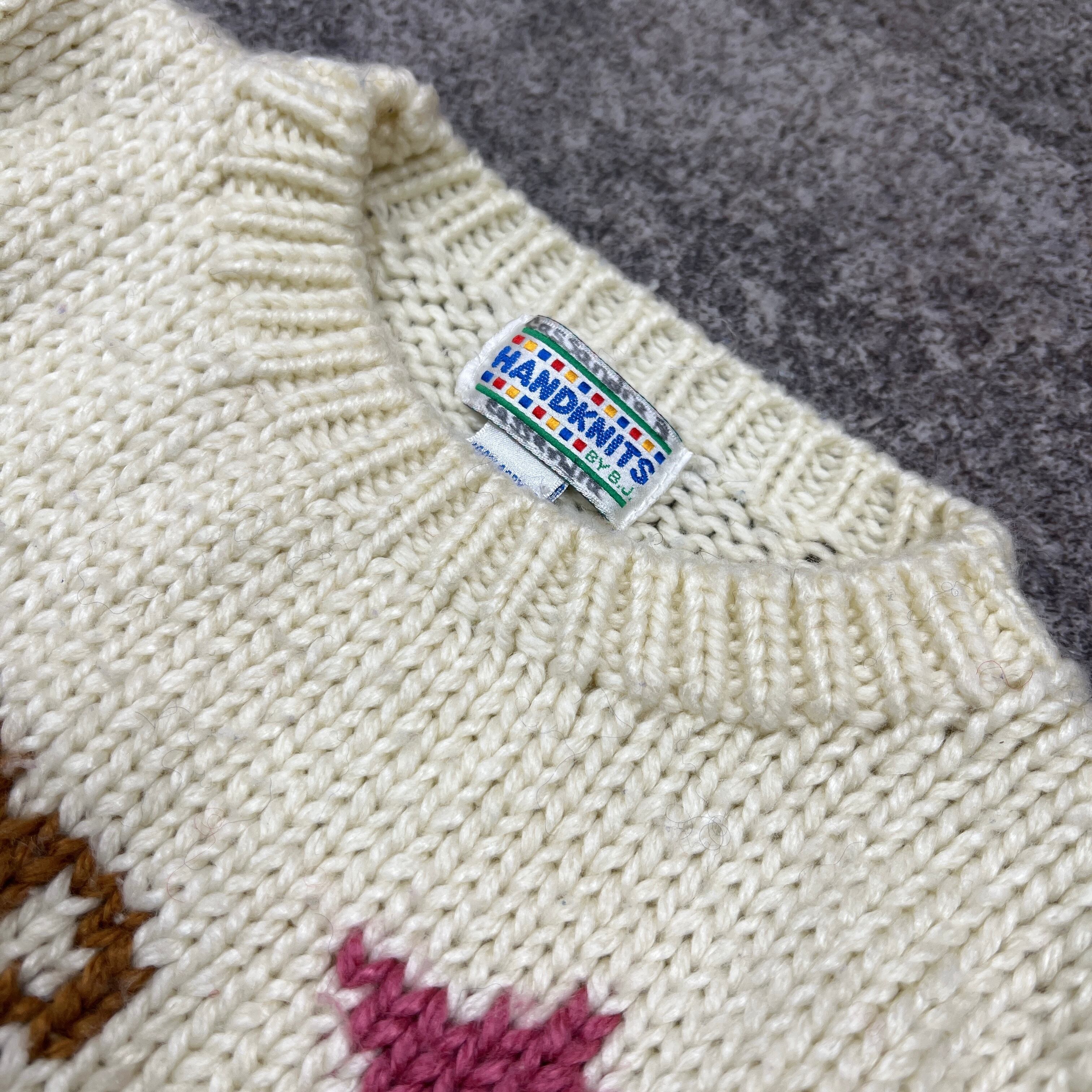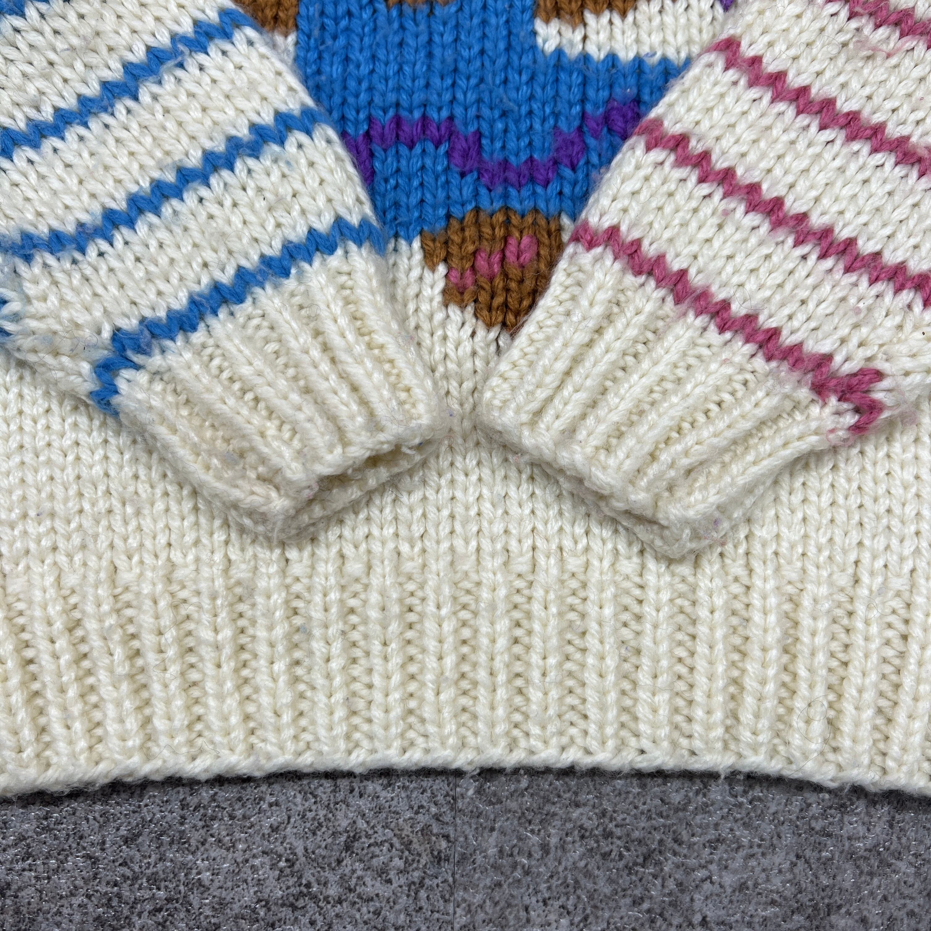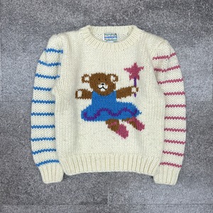 【6T】HAND KNITS BY B.J./bear pattern knit/off-white くま柄 ざっくりニット オフ白