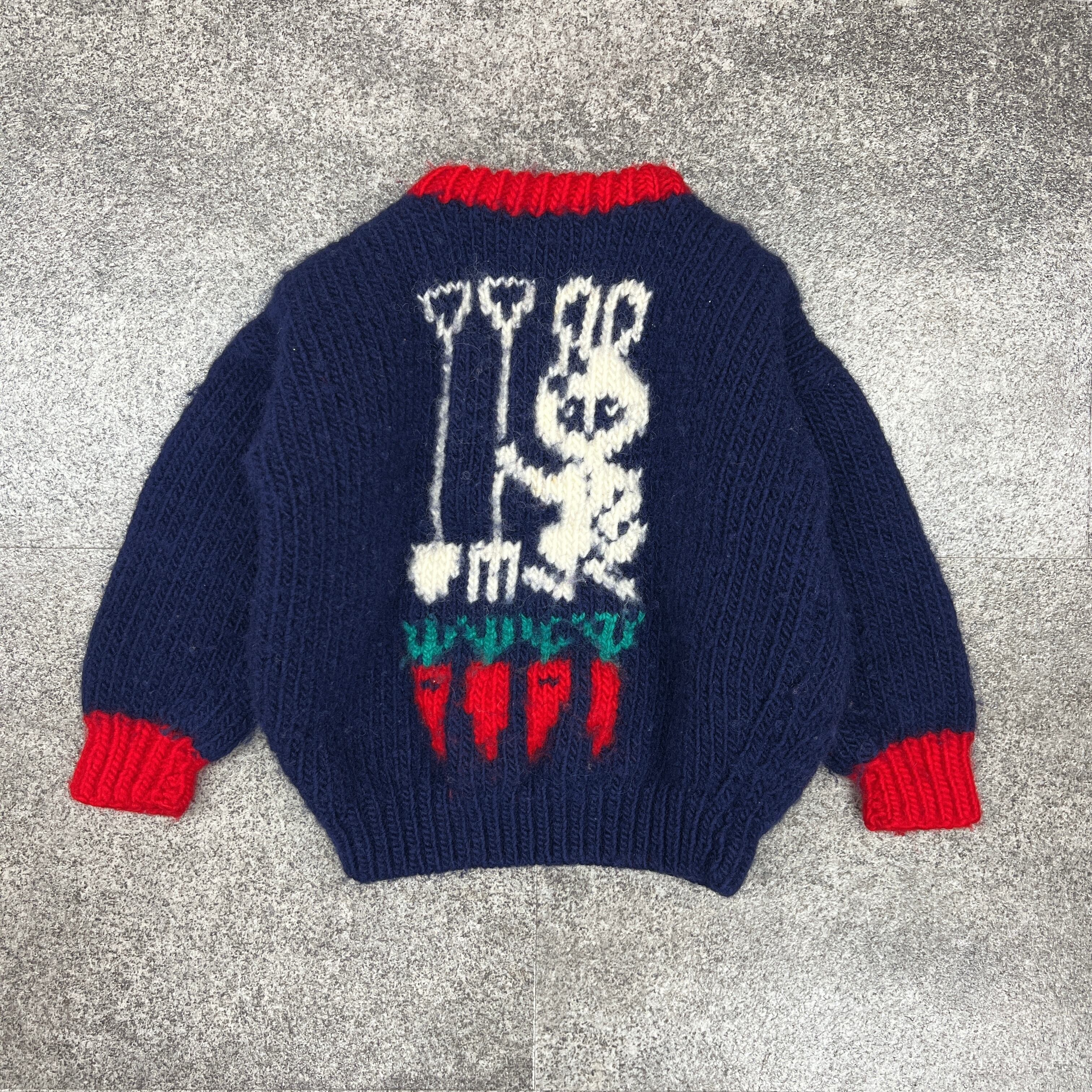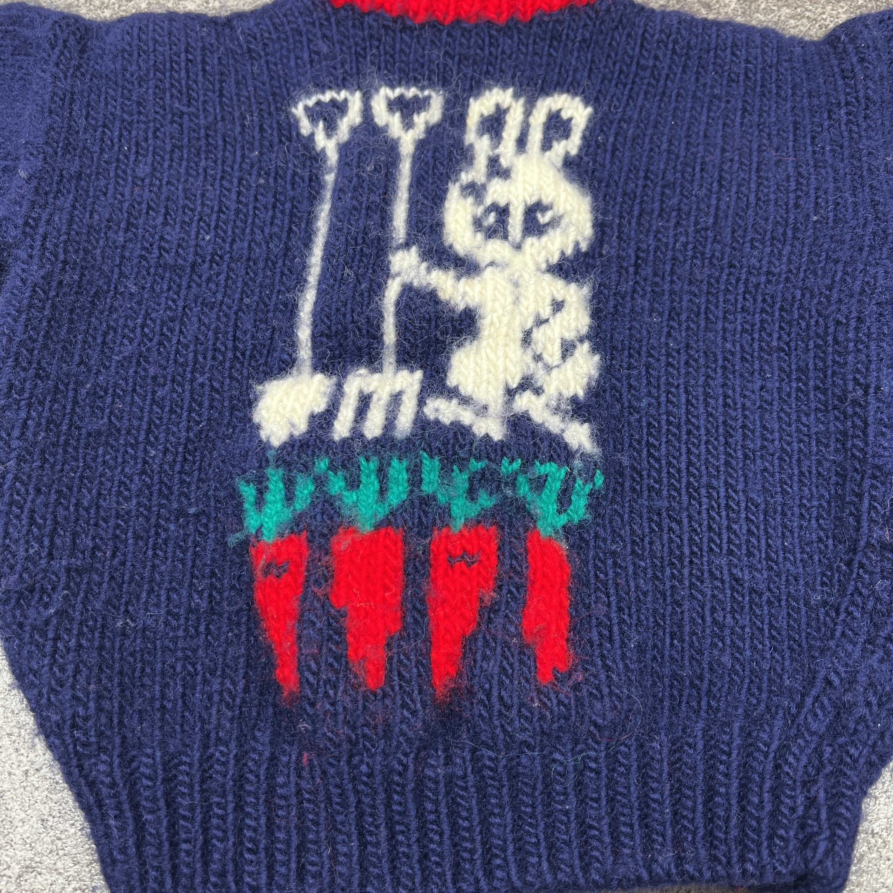 【2-3T】Rabbit and carrot pattern knit/navy うさぎ&にんじん柄 ニット セーター ネイビー 紺