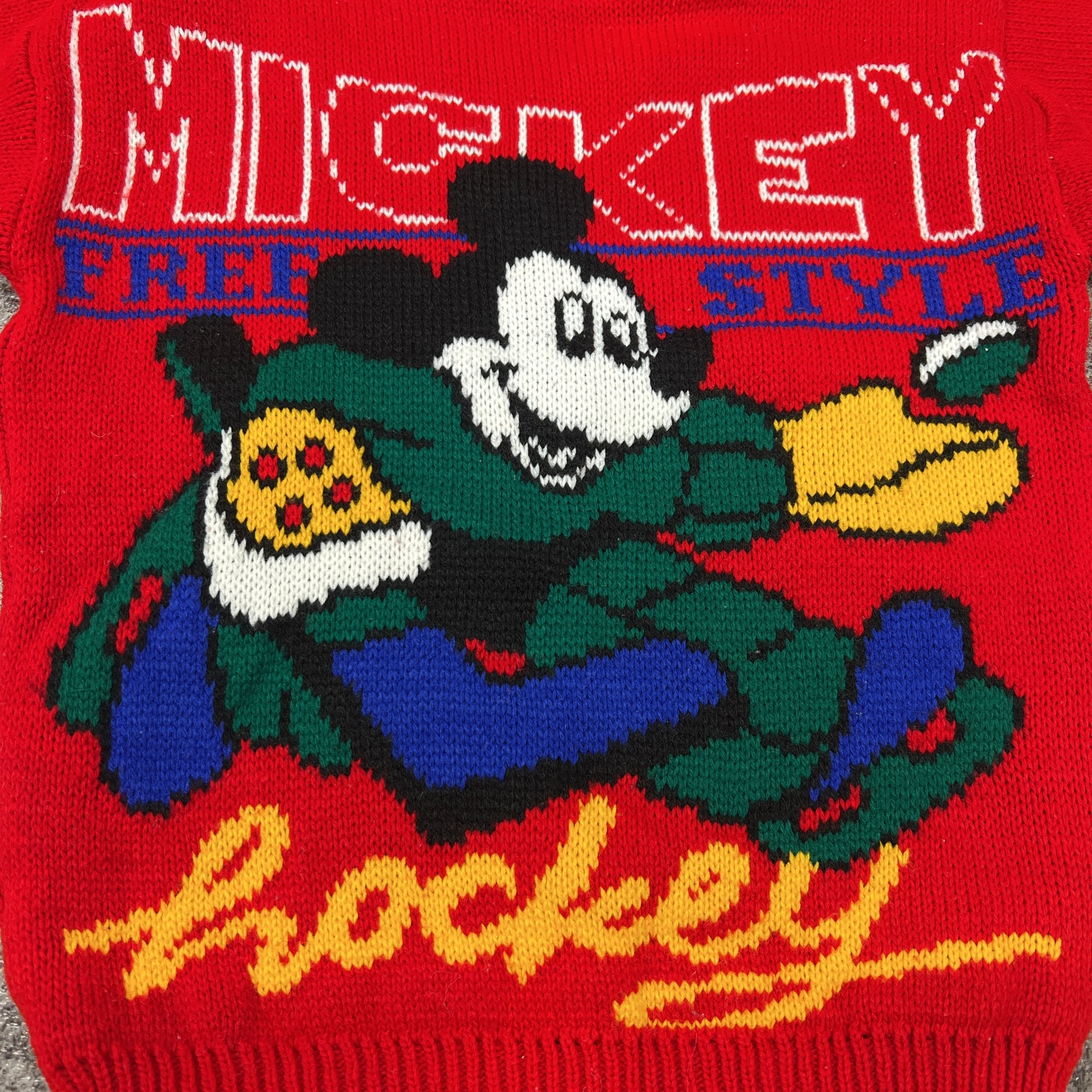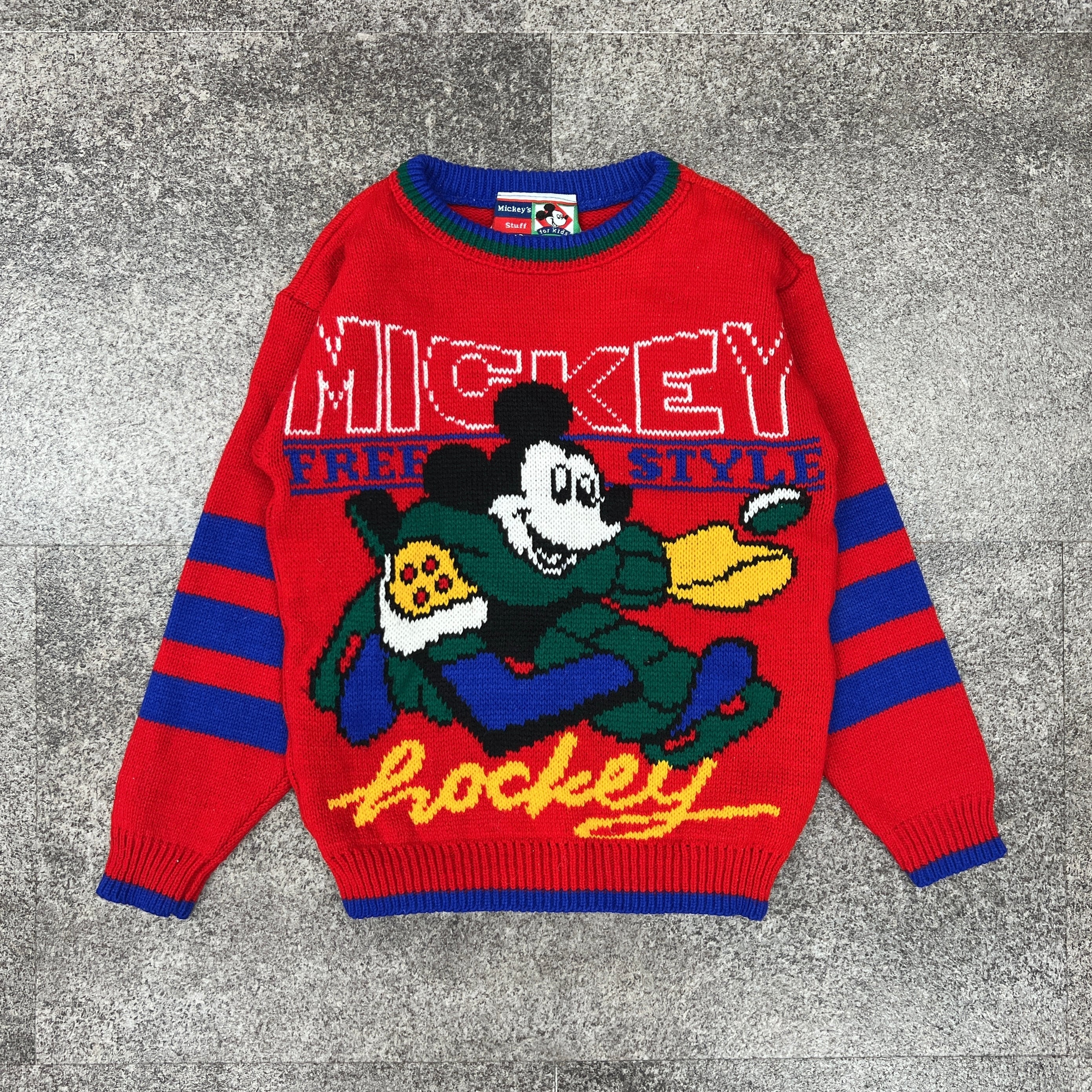 【6T】 USA製 Disney mickey pattern knit ディズニー ミッキー ニット セーター 赤