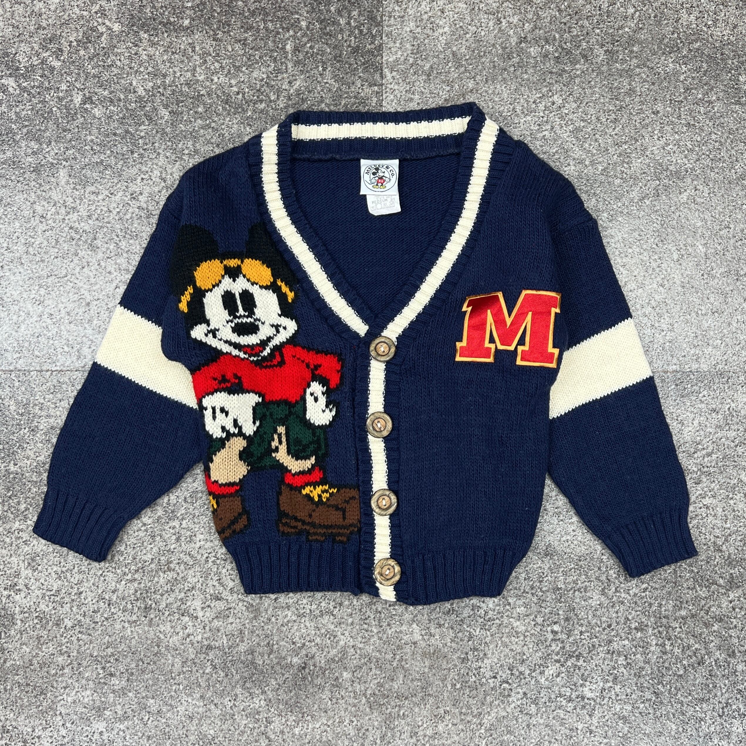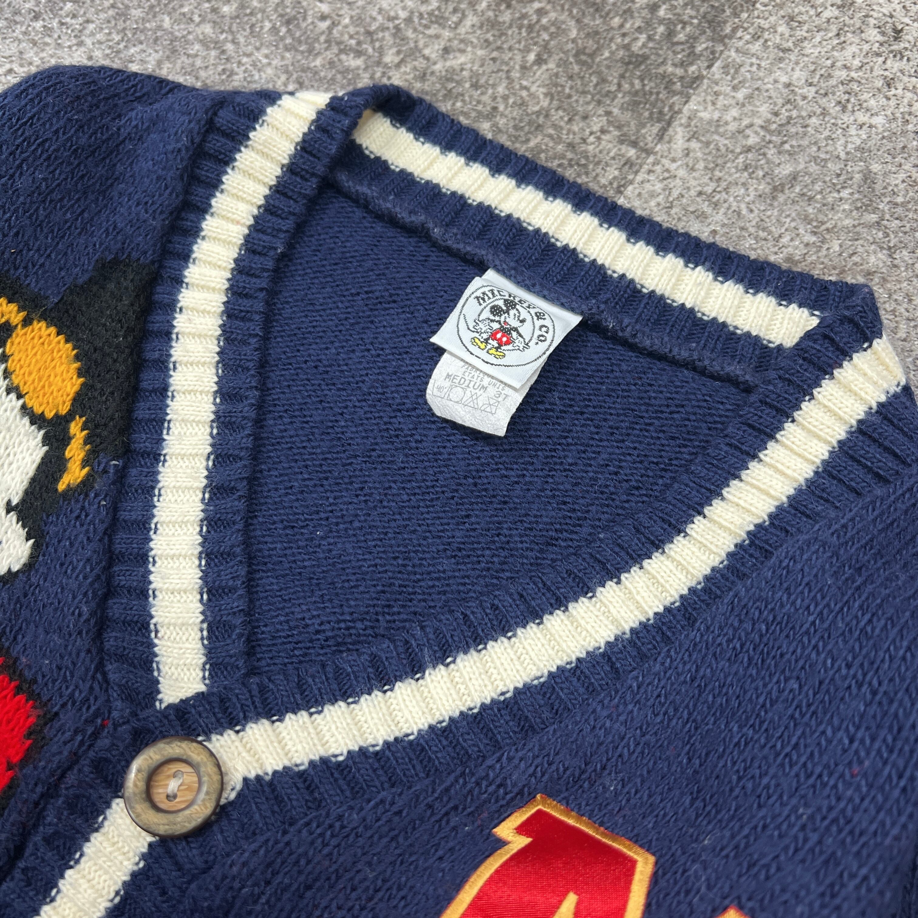 【3T】USA製 Disney mickey pattern knit cardigan ディズニー ミッキー ニット カーディガン