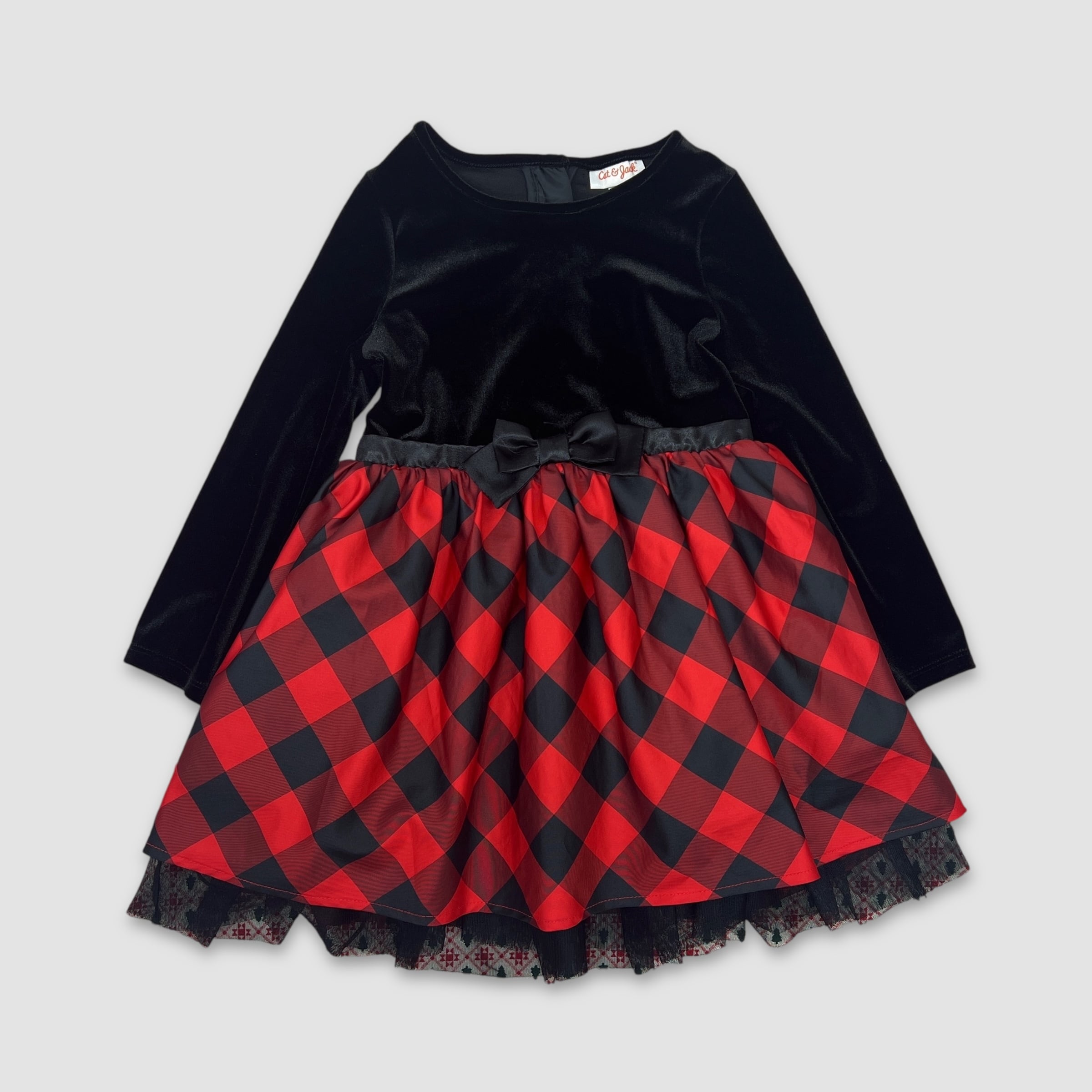 【4T】Cat&Jack velour check dress キャット&ジャック ベロア チェック柄 ドレス ワンピース 黒 赤