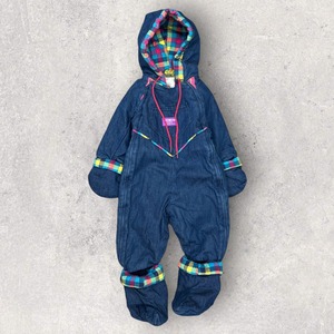 【18M】USA製 OSHKOSH baby jumpsuit オシュコシュ ベビー ジャンプスーツ フード付きカバーオール デニム