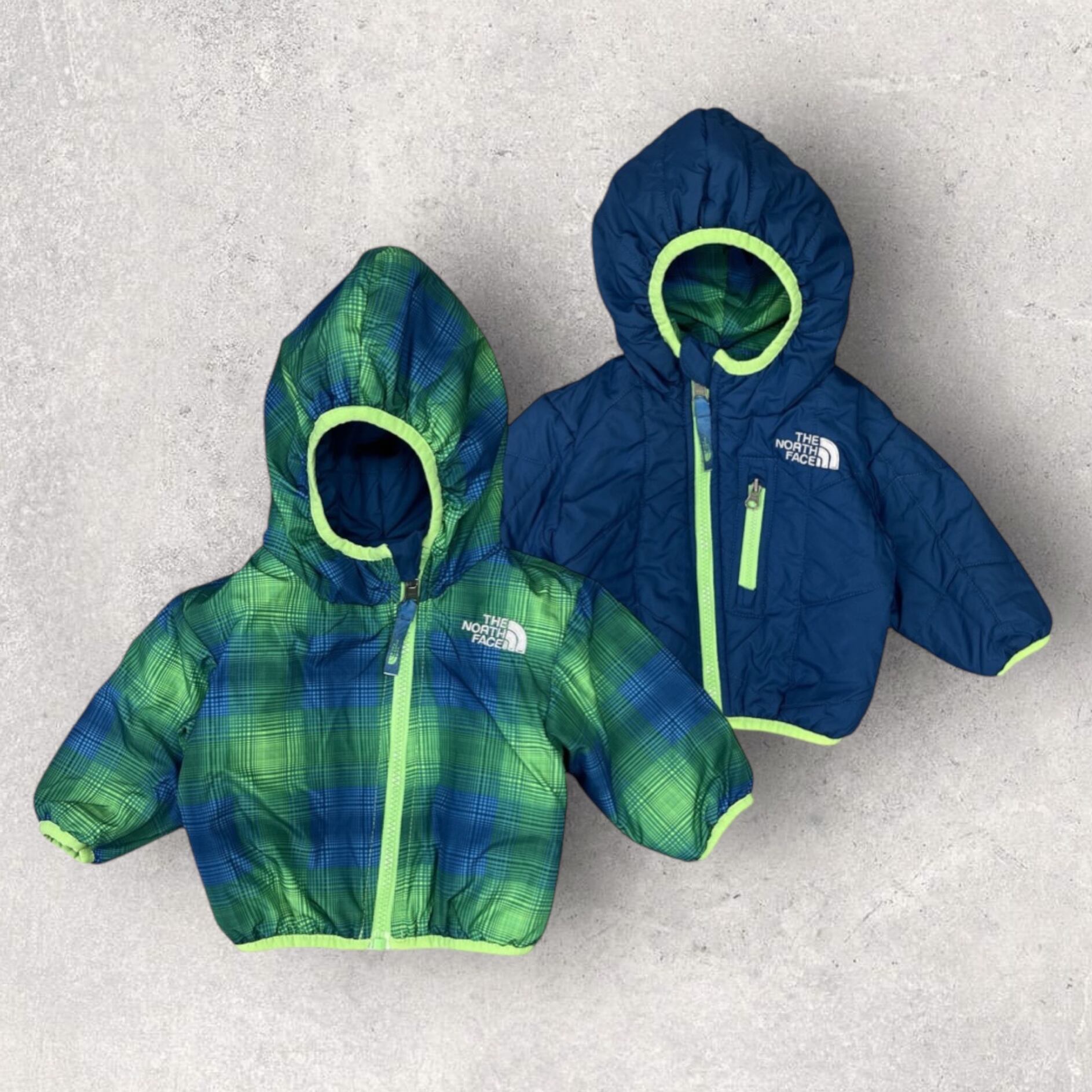 【0-6M】THE NORTH FACE baby reversible foodie jacket ノースフェイス リバーシブル フード付きジャケット スノーウェア ネイビー グリーン チェック