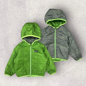 【12-18M】Patagonia baby reversible foodie jacket パタゴニア リバーシブル フード付きジャケット スノーウェア グリーン ボーダー