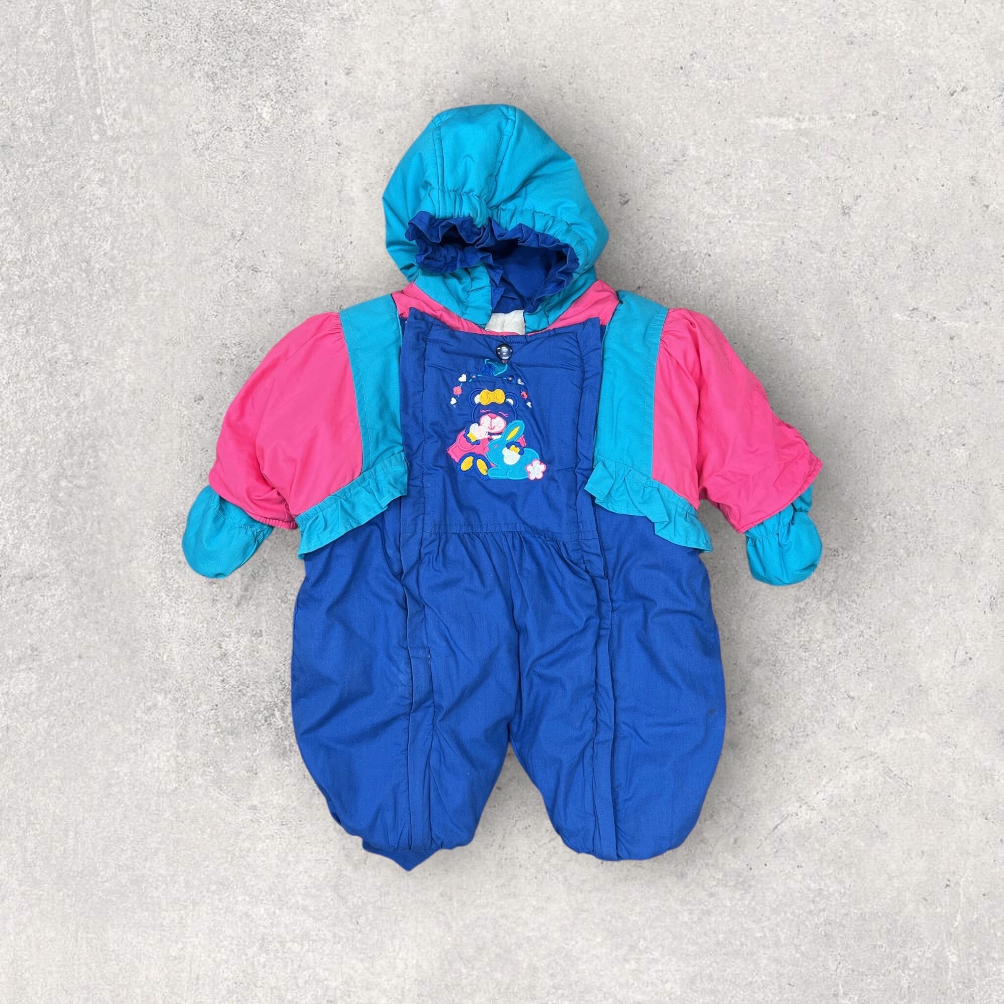 【6-9M】KIDS'N'FUN vintage baby jumpsuit ベビー ジャンプスーツ フード付きカバーオール スノーウェア
