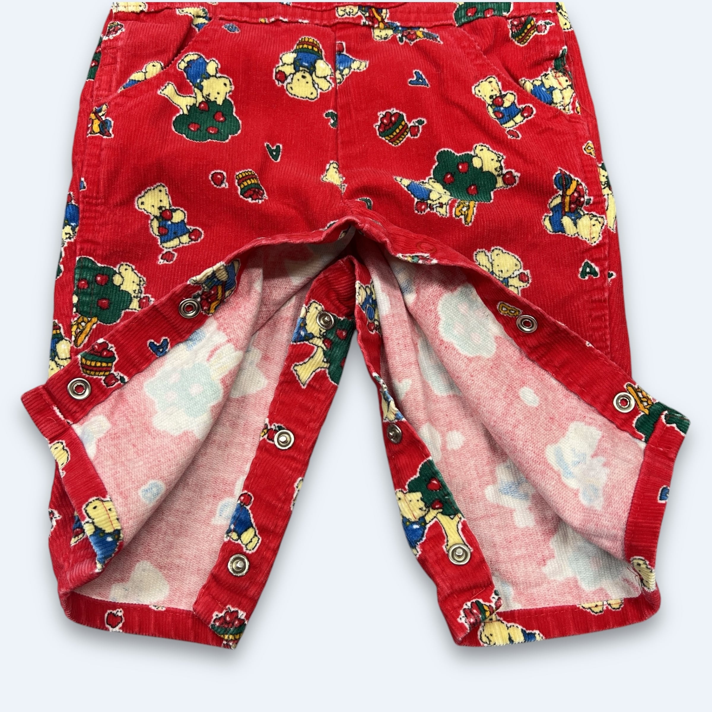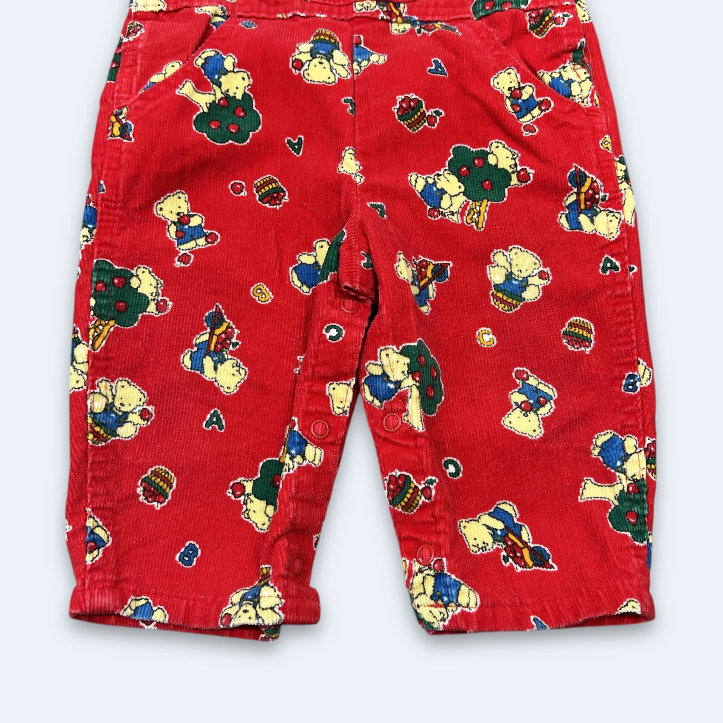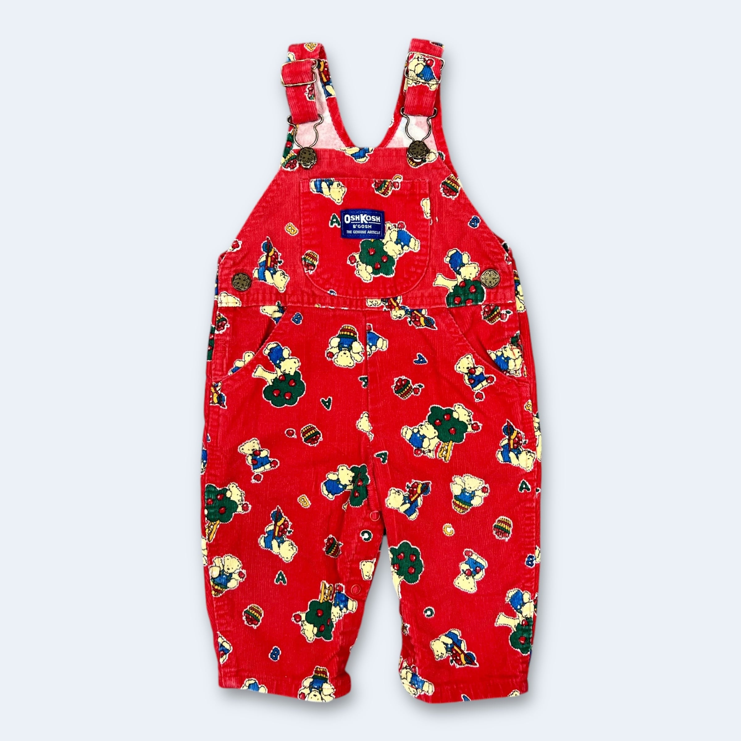 【12M】USA製 OSHKOSH patterned corduroy overall オシュコシュ くまとりんご柄 コーデュロイ オーバーオール 赤 レッド